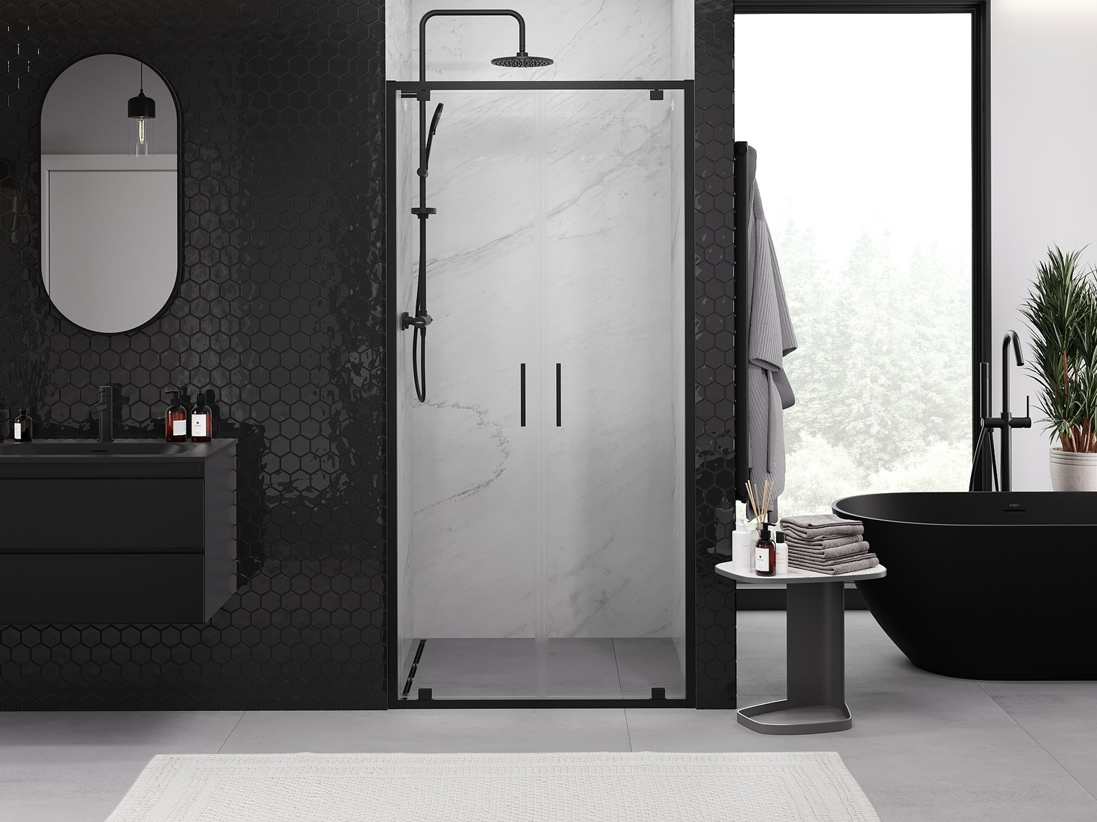 Mexen Exo dvigubos atveriamos dušo durys 90 cm, skaidrios, juodos - 8182-090-000-70-00