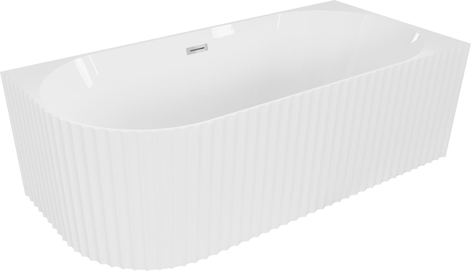 Mexen Gia laisvai pastatoma kampinė vonia su grioveliais, dešinė 170 x 80 cm, balta blizgi, chromuotų dalių išleidimo anga