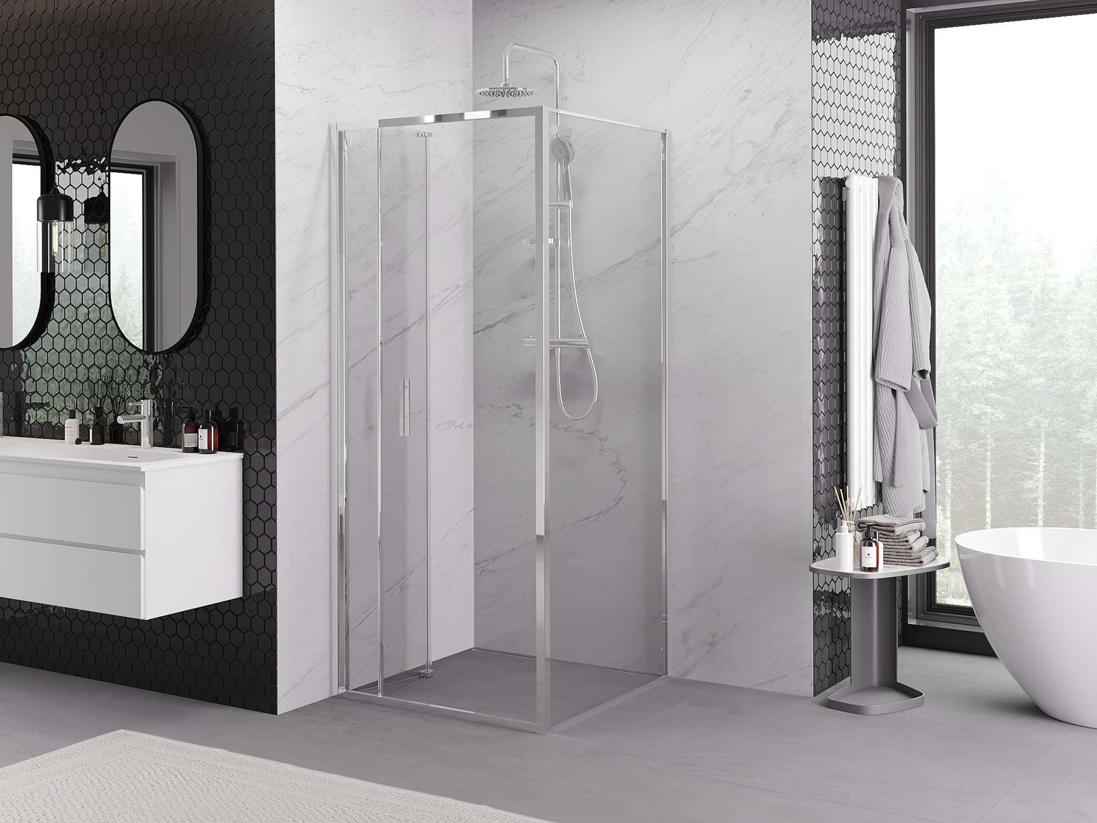 Produktą, atsižvelgiant į poreikius, galima sumontuoti tiek ant dušo padėklo, tiek tiesiogiai ant grindų. Universalus montavimo būdas leidžia pritaikyti produktą įvairių tipų vonios kambariams ir erdvės konfigūracijoms.