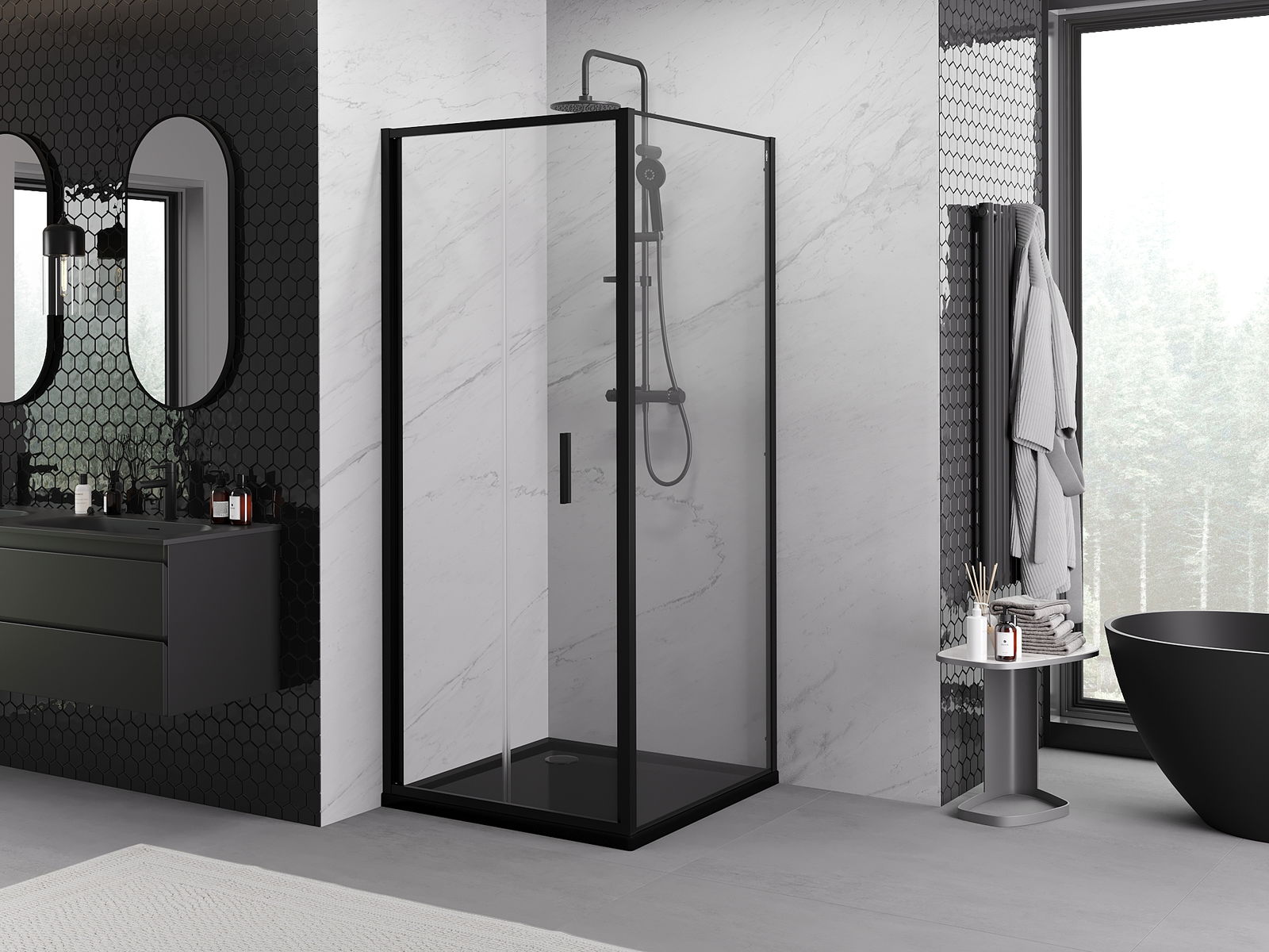 Mexen Rio kvardratinė dušo kabina 90 x 90 cm, permatoma, juoda - 860-090-090-70-00