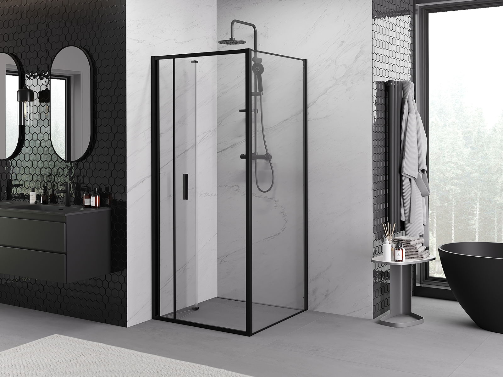 Mexen Rio kvardratinė dušo kabina 90 x 90 cm, permatoma, juoda - 860-090-090-70-00