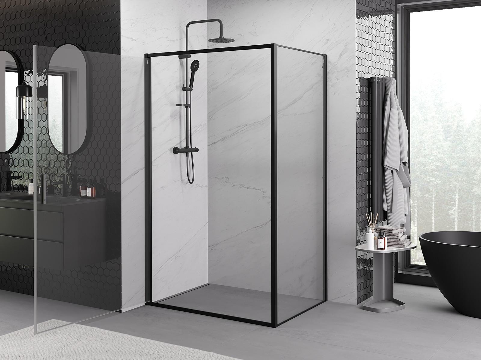 Mexen Exo varstoma dušo kabina 100 x 80 cm, permatoma, juoda - 817-100-080-70-00