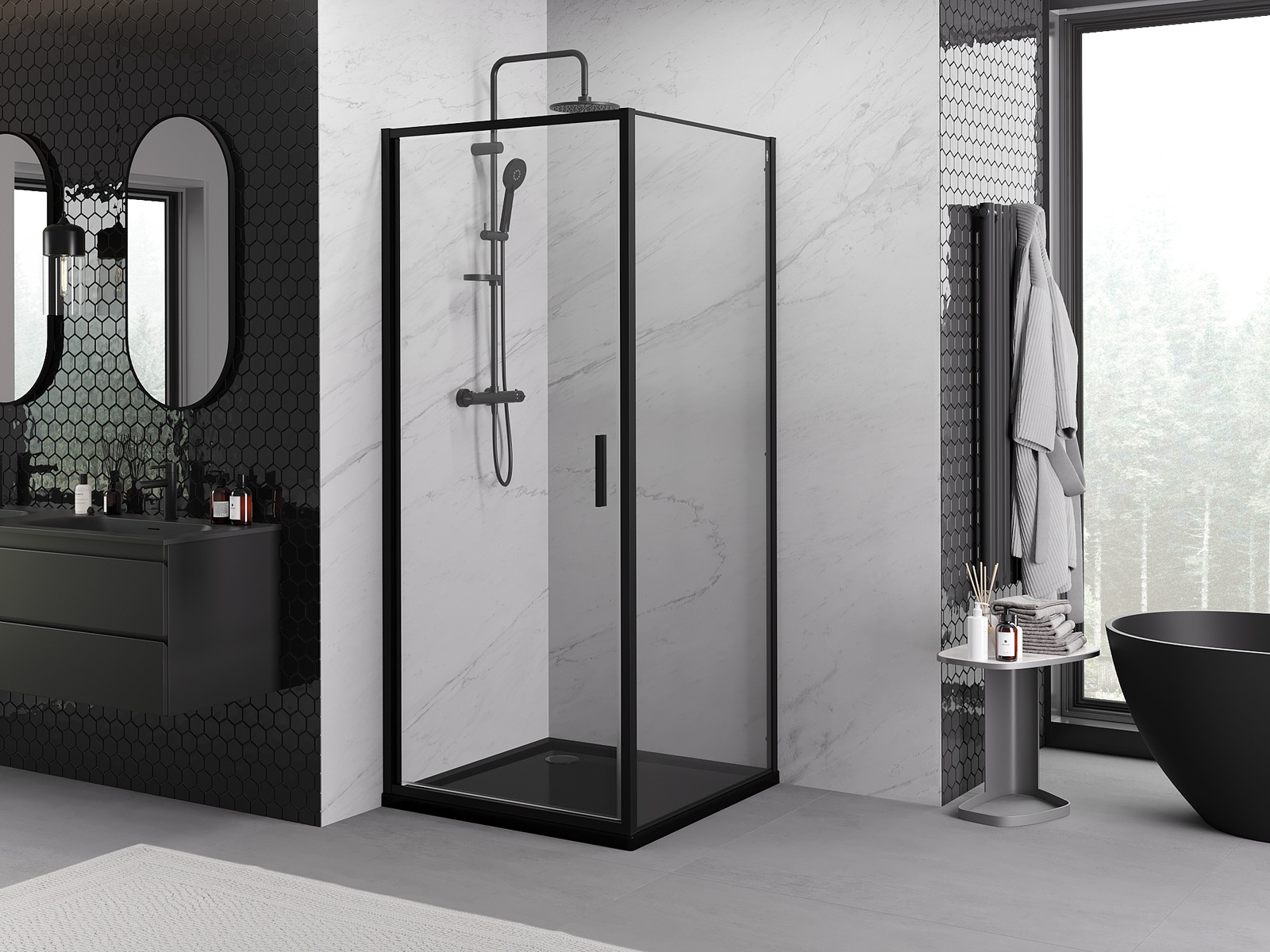 Mexen Exo atveriama dušo kabina 95 x 95 cm, skaidri, juoda - 817-095-095-70-00