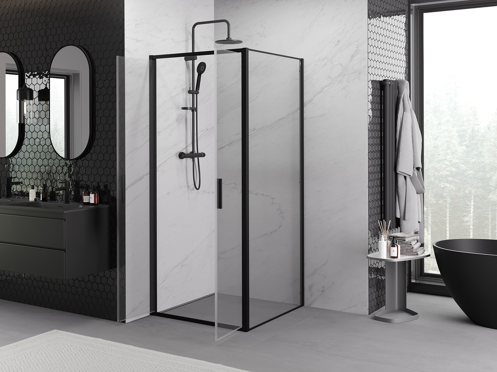 Produktą, atsižvelgiant į poreikius, galima sumontuoti tiek ant dušo padėklo, tiek tiesiogiai ant grindų. Universalus montavimo būdas leidžia pritaikyti produktą įvairių tipų vonios kambariams ir erdvės konfigūracijoms.