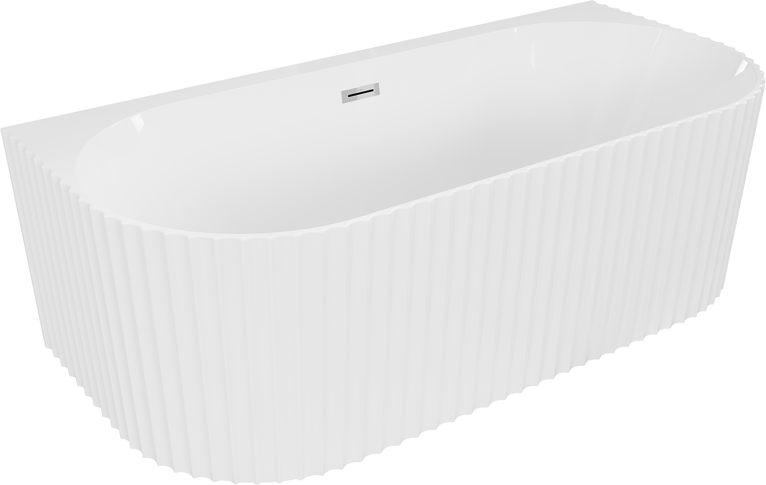 Mexen Sella laisvai stovinti vonia prie sienos su reljefu 150 x 75 cm, blizgi balta, chromuota perpildymo anga - 52711507500-01