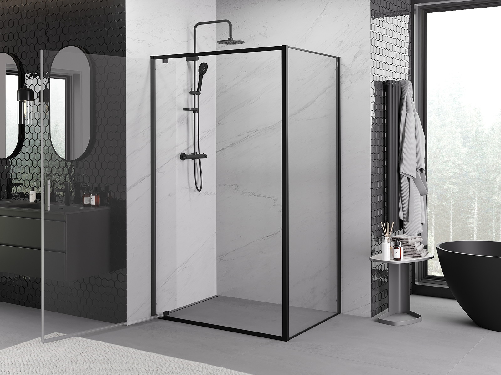 Mexen Rio kvardratinė dušo kabina 90 x 90 cm, permatoma, juoda - 860-090-090-70-00