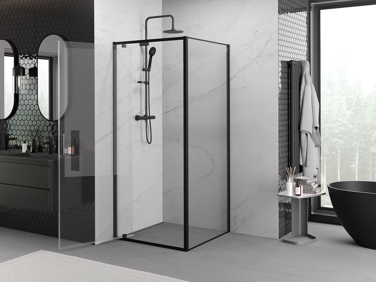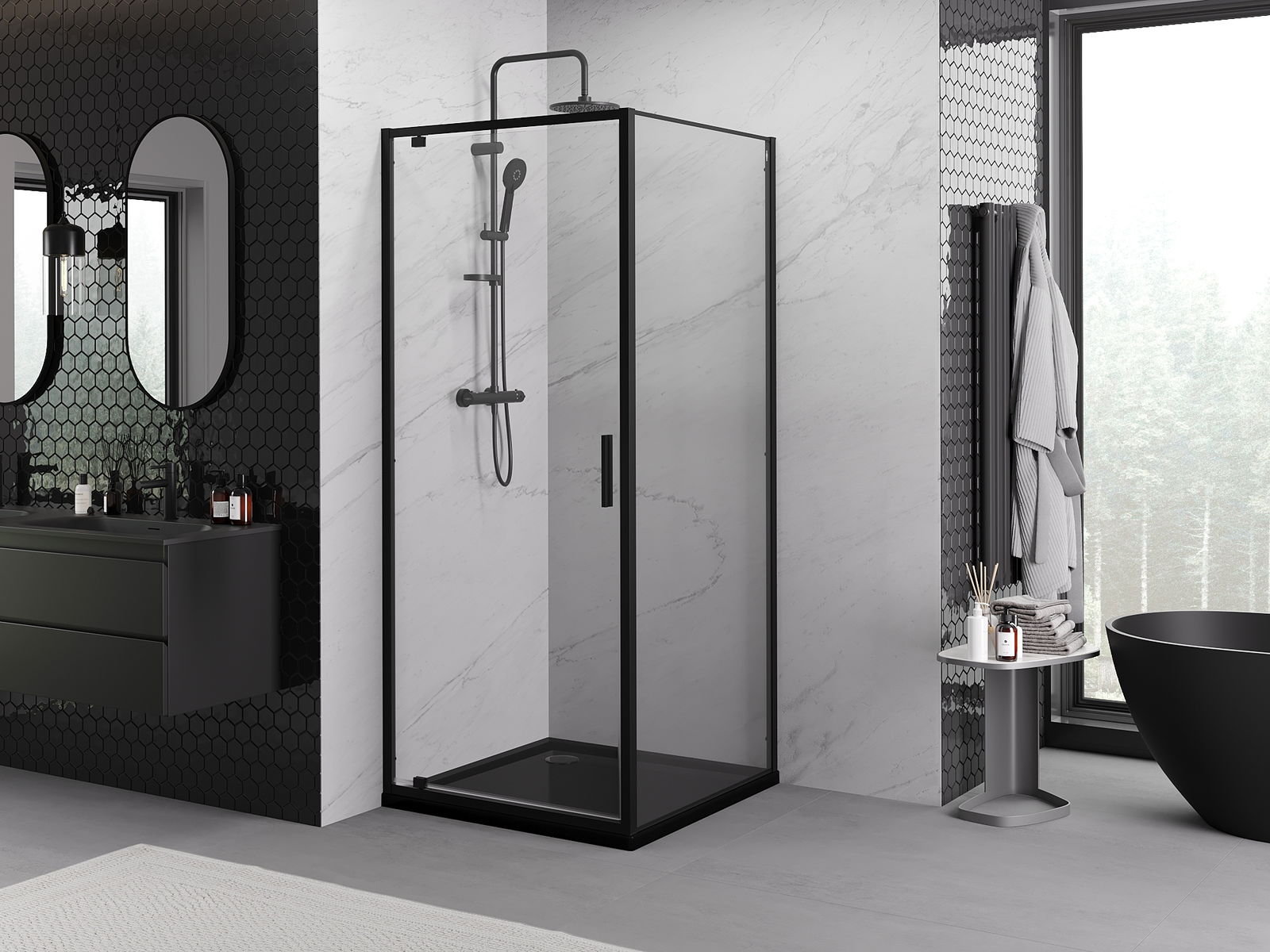 Mexen Exo dušo kabina atlenkiama 85 x 85 cm, skaidri, juoda - 8181-085-085-70-00