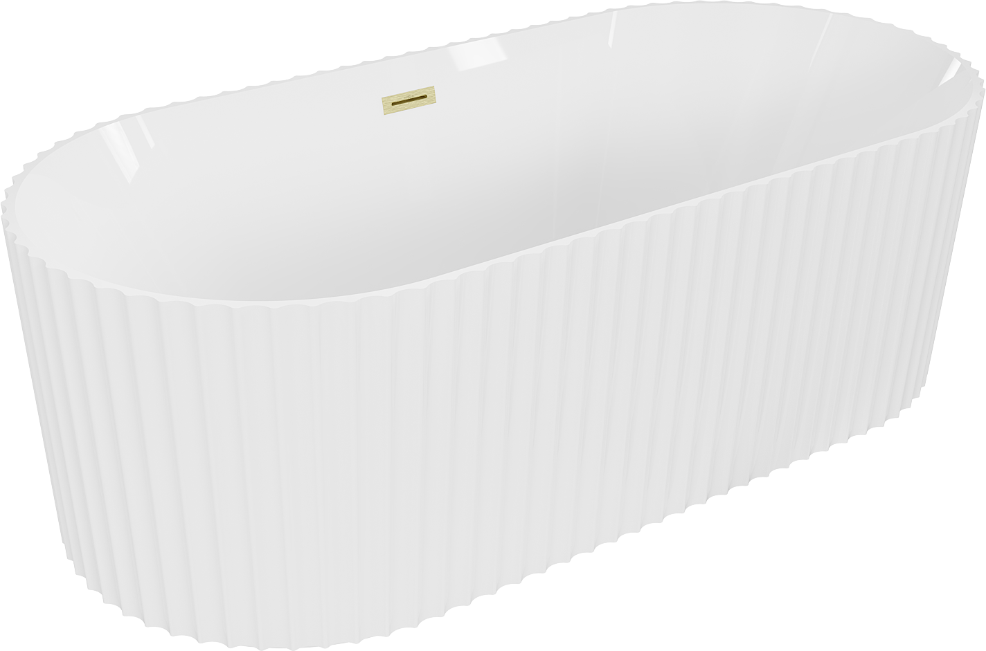 Mexen Paola laisvai stovinti vonia, rifliuota 150 x 75 cm, blizgi balta, auksinis šepetėlis - 52721507500-55