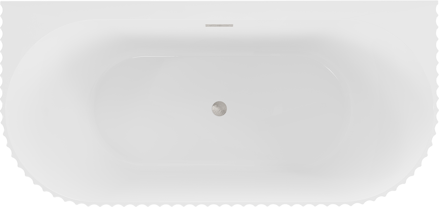 Mexen Sella laisvai stovinti vonia su grioveliais prie sienos 150 x 75 cm, blizgi balta, šepečiu nikeliu perpylimas