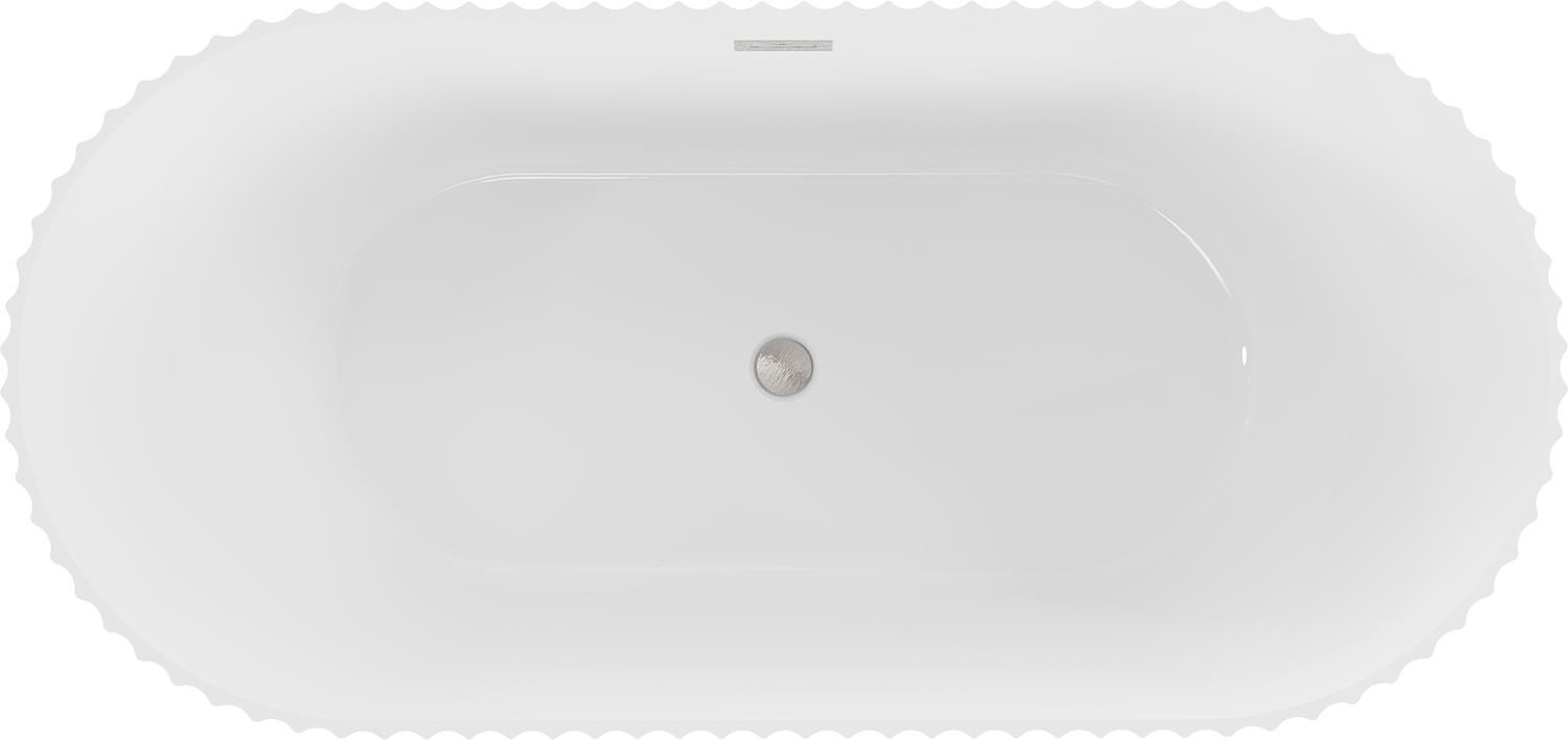 Mexen Paola laisvai pastatoma banguota vonia 150 x 75 cm, blizgi balta, šepetėliu nikeliuotas perpylimas - 52721507500-97