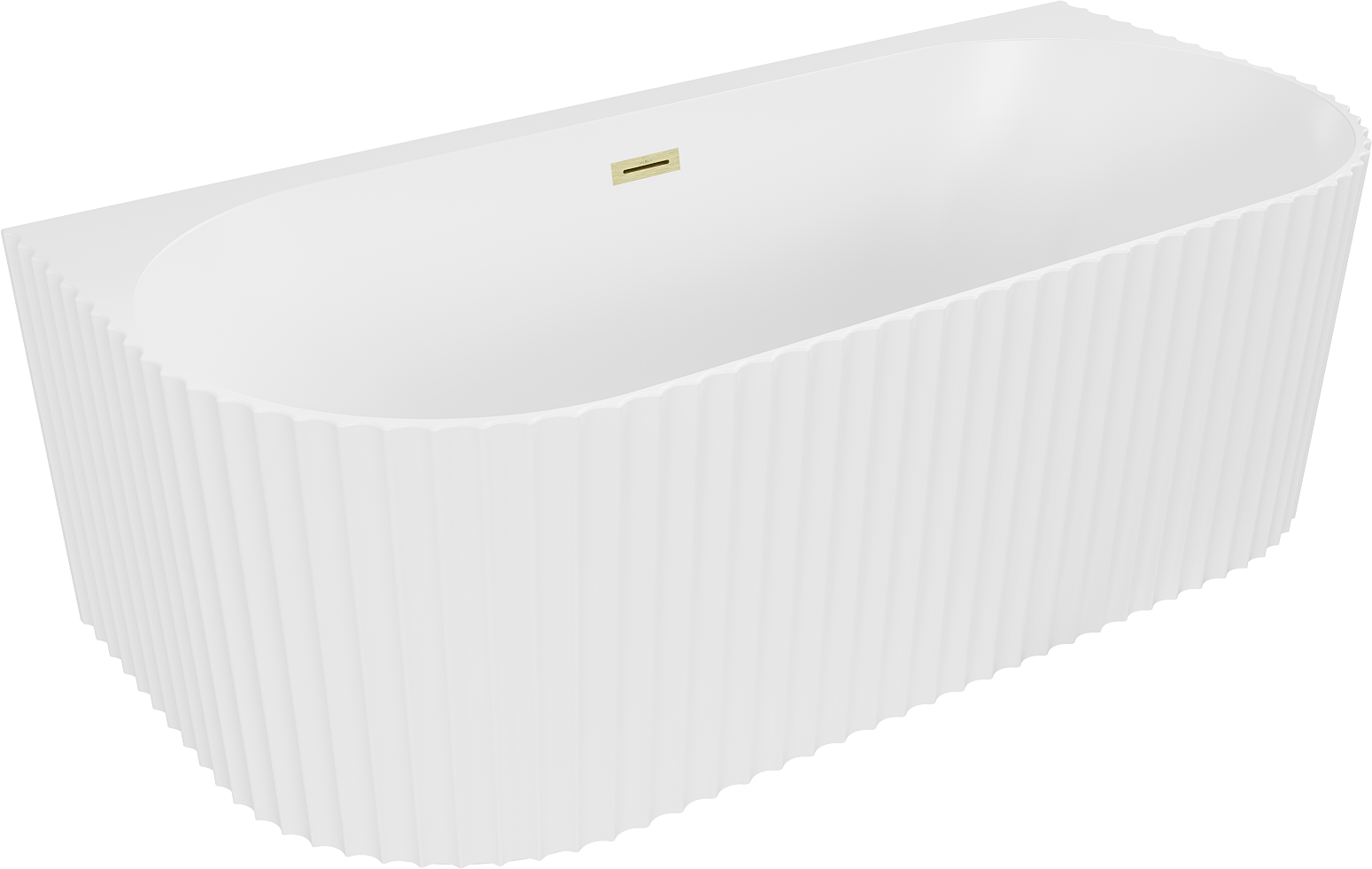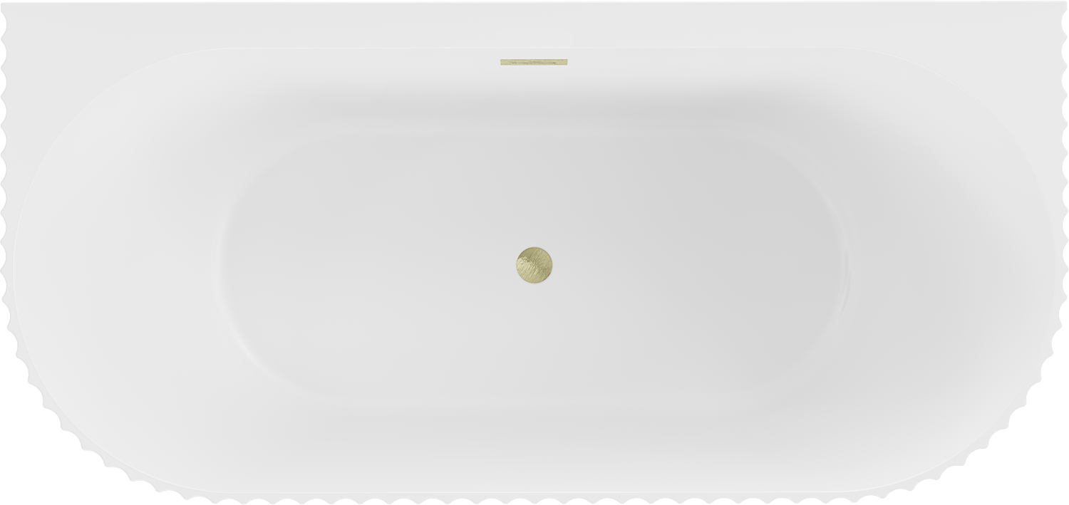 Mexen Sella laisvai stovinti vonia prie sienos, rifliuota 150 x 75 cm, balta matinė, šepetėlis auksinės spalvos