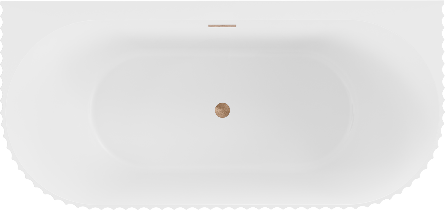 Mexen Sella laisvai stovinti prie sienos rifliuota vonia 150 x 75 cm, balta matinė, šepečiuota vario perpylimo anga