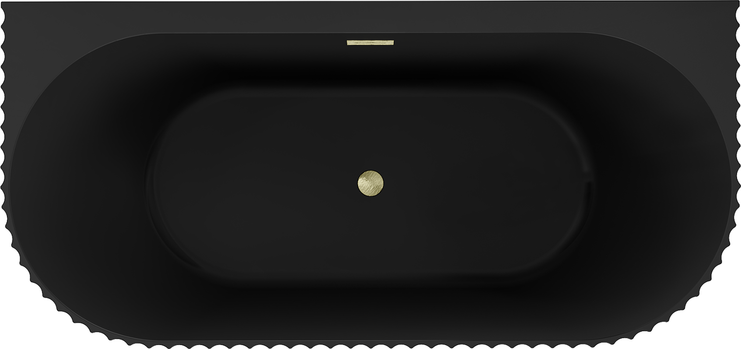 Mexen Sella laisvai stovinti prie sienos rifliuota vonia, 150 x 75 cm, juoda matinė, nuotėkis auksinis šlifuotas