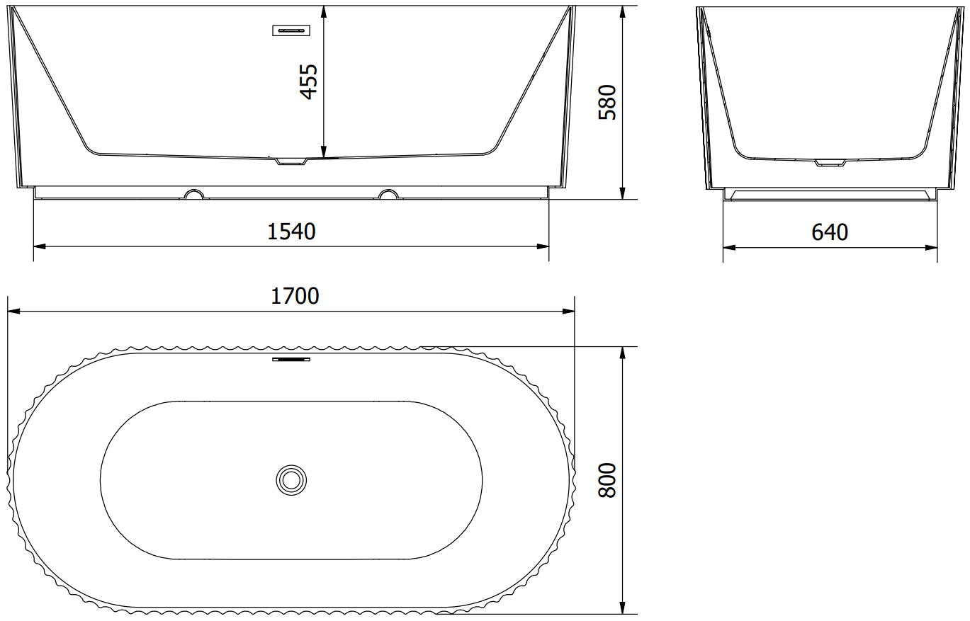 Mexen Paola laisvai stovinti rifliuota vonia, 170 x 80 cm, juoda matinė, balta persipylimo anga - 52721708071-20