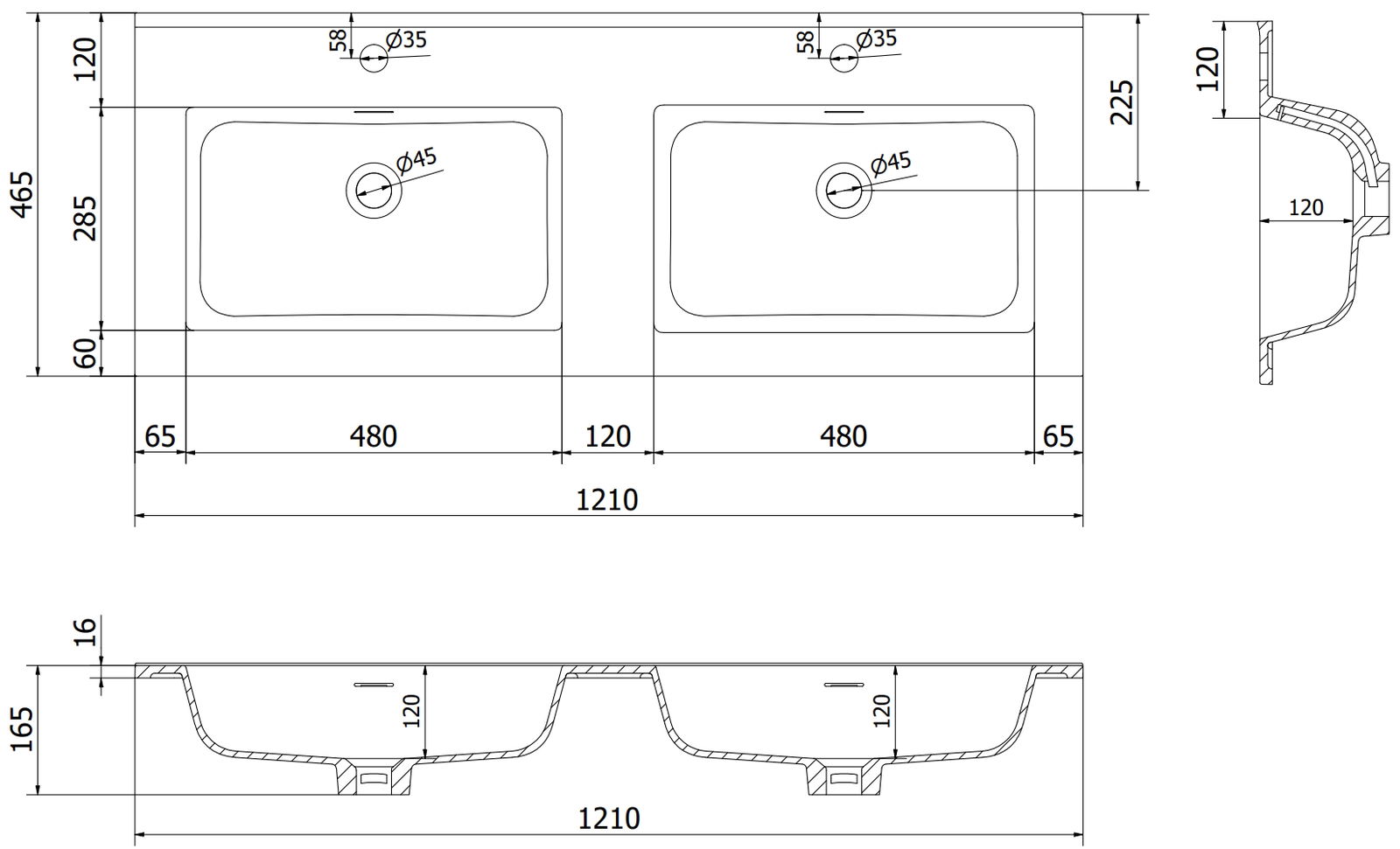 Mexen Otis įmontuota dviguba praustuvas į stalviršį 121 x 46,5 cm, baltas blizgesys - 25181200D
