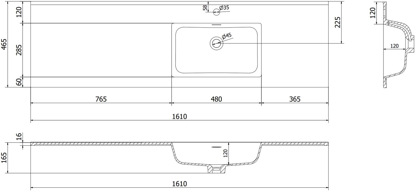 Mexen Otis įleidžiama į stalviršį kriauklė, dešinė 161 x 46,5 cm, balta blizgi - 25181600P