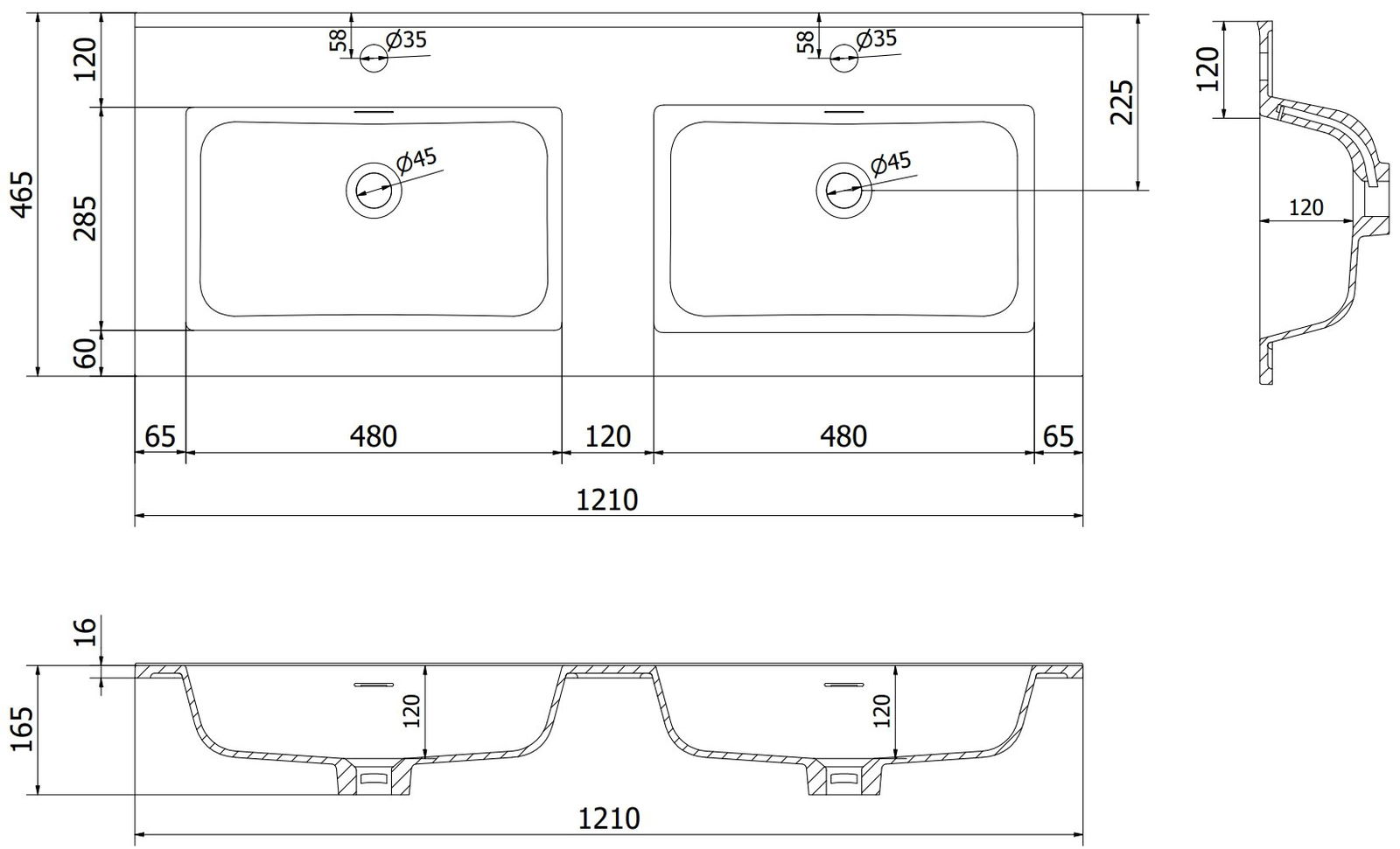 Mexen Otis įleidžiama į stalviršį dviguba kriauklė 121 x 46,5 cm, balta matinė - 25181201D