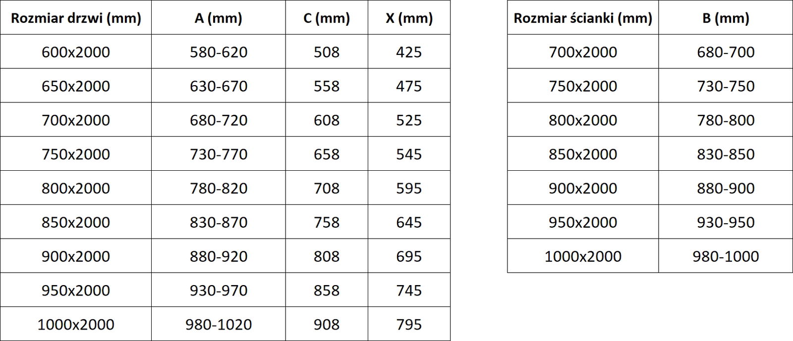 Dydis: 85x90 cm (durys 85 cm, sienelė 90 cm)