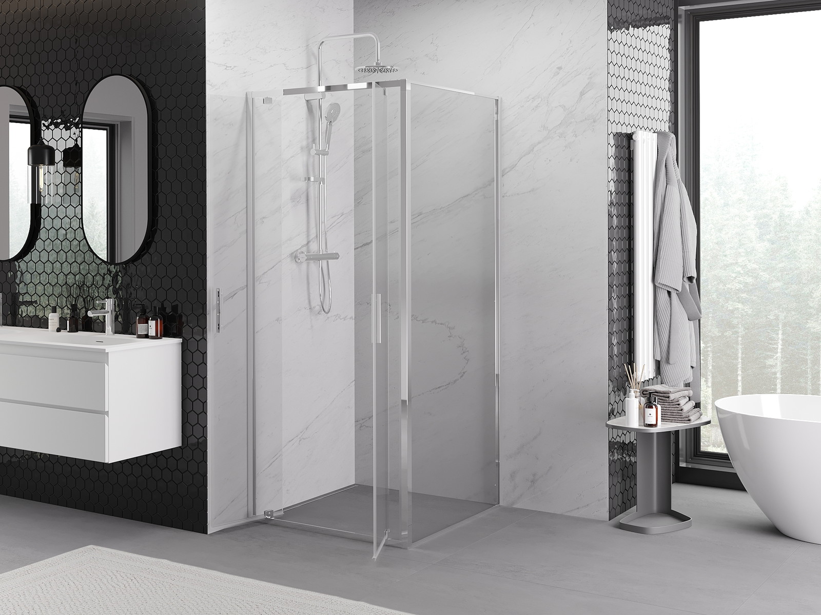 Produktą, atsižvelgiant į poreikius, galima sumontuoti tiek ant dušo padėklo, tiek tiesiogiai ant grindų. Universalus montavimo būdas leidžia pritaikyti produktą įvairių tipų vonios kambariams ir erdvės konfigūracijoms.