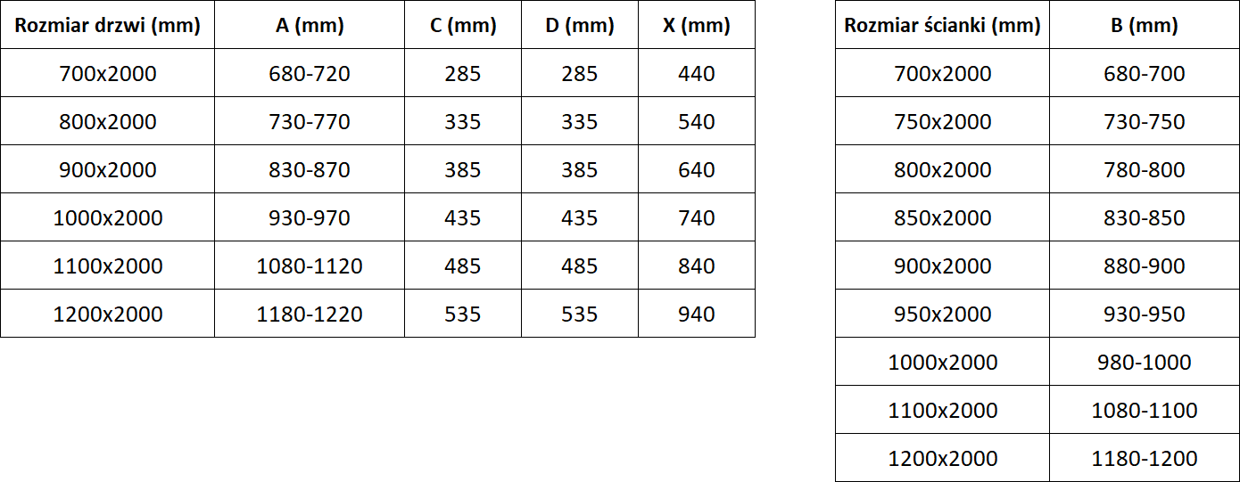 Dydis: 90x70 cm (durys 90 cm, siena 70 cm)