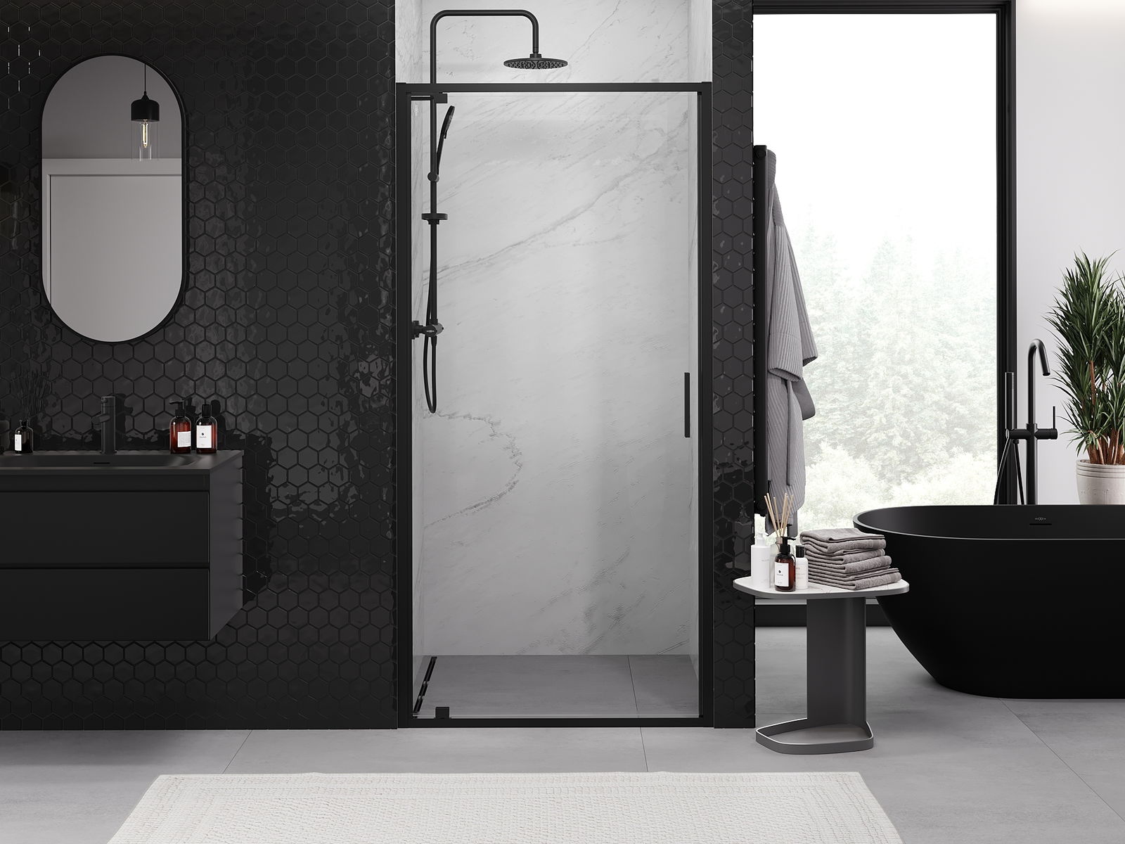 Mexen Exo dušo durys varstomos 65 cm, skaidrios, juodos - 8181-065-000-70-00