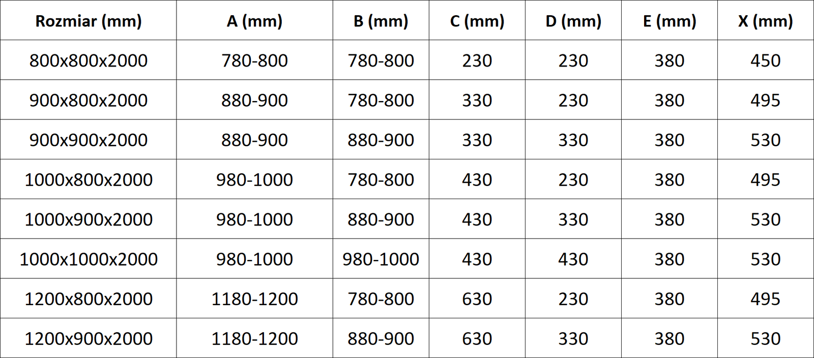 Dušo kabinos, durys ir sienelės yra standartiškai pritaikytos montuoti ant nustatytų matmenų dušo padėklų. Būtent šie matmenys nurodomi gaminio pavadinime arba aprašyme. Tačiau atkreipkite dėmesį, kad faktiniai elementų matmenys gali šiek tiek skirtis nuo vardinių verčių. Planuojant montuoti tiesiai ant grindų, rekomenduojama atidžiai patikrinti išorinius matmenis ir elementų išdėstymą pagal techninį brėžinį.