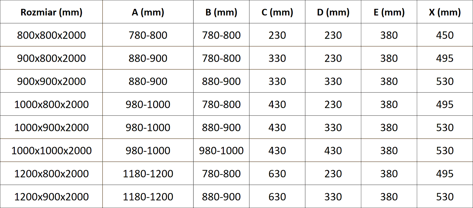 Dėl universalaus tvirtinimo sistemos, dušo durys gali būti sumontuotos dešinėje arba kairėje pusėje, atsižvelgiant į poreikius. Tai leidžia lengvai suprojektuoti dušą, pritaikytą vonios kambario erdvei.