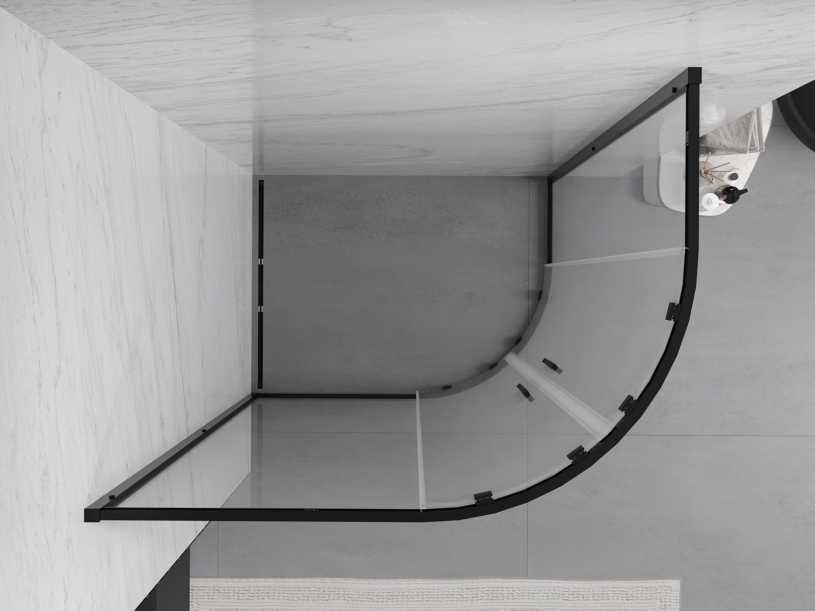 Mexen Exo asimetriška stumdoma pusapvalė dušo kabina 120 x 90 cm, permatoma, juoda - 8132-120-090-70-00