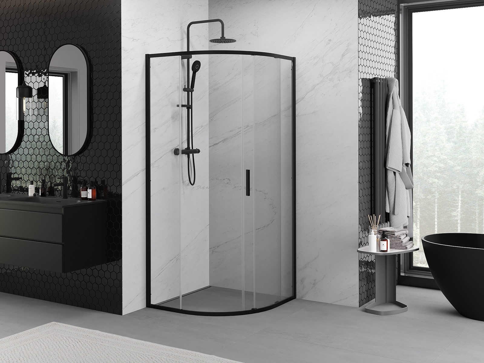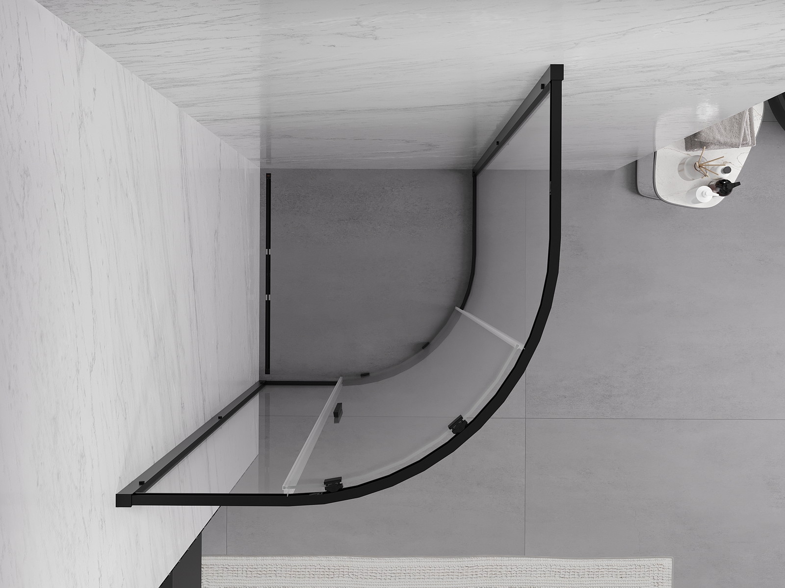 Mexen Exo pusapvalė stumdomoji dušo kabina 80 x 80 cm, permatoma, juoda - 8131-080-080-70-00