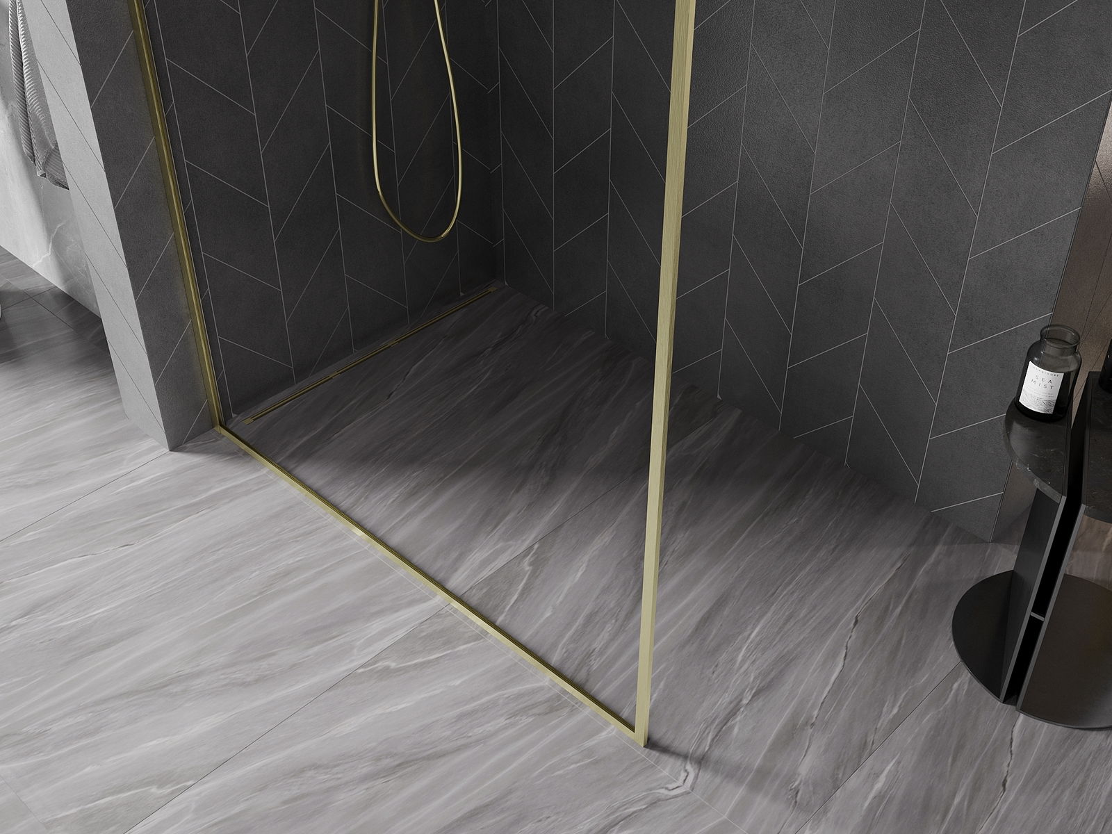 Mexen Kioto-F dušo sienelė Walk-in su rėmu 135 x 202 cm, skaidri 8 mm, auksinė šlifuota - 800-135-104-55-00