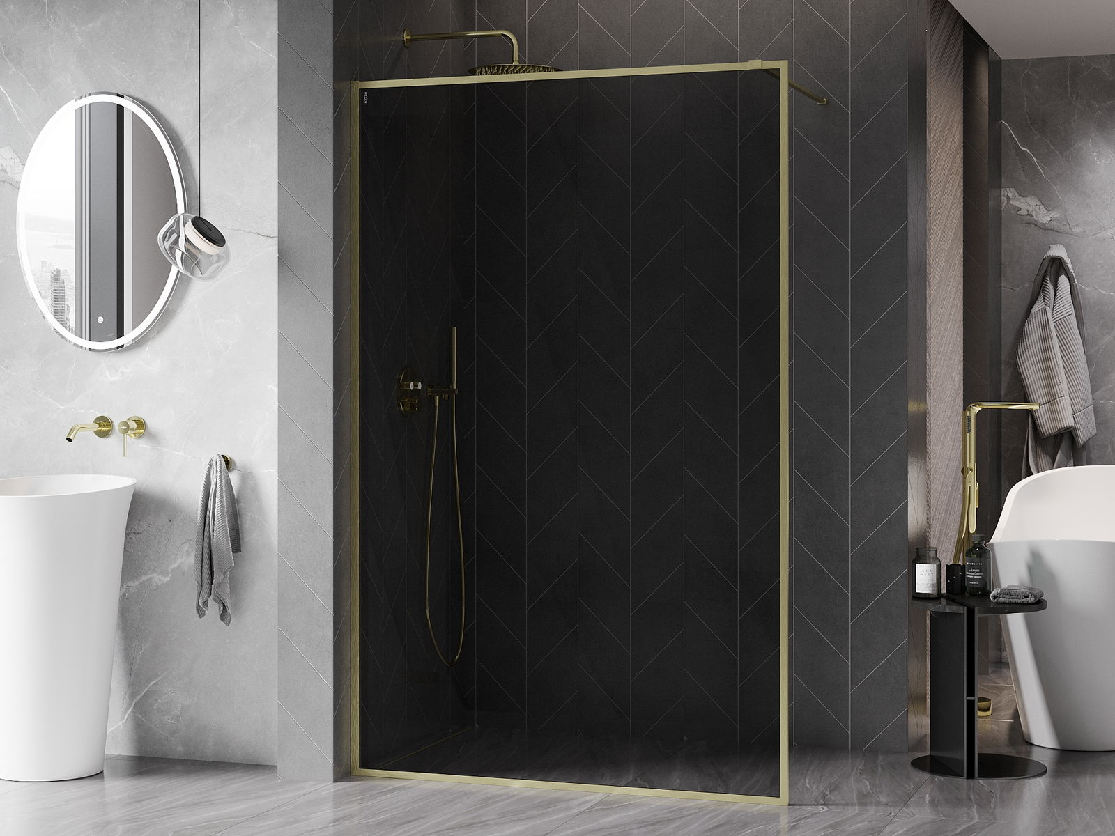 Mexen Kioto-F dušo siena su rėmu Walk-in, 100 x 202 cm, grafitas 8 mm, auksinis šlifuotas - 800-100-104-55-40