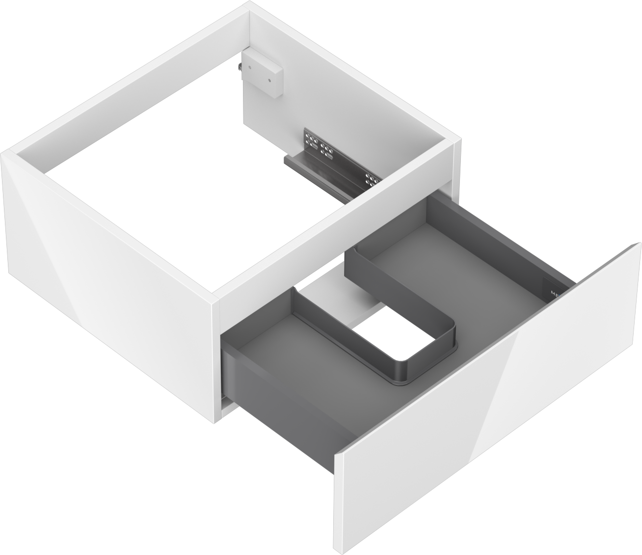 Iškirpimas stalčiuje yra suprojektuotas taip, kad tilptų sifonas, kuris yra būtinas kriauklės įrenginiuose. Dėl to baldas gali būti pilnai funkcionaliai sumontuotas, nereikalaujant atsisakyti vietos stalčiuje dėl įrenginio.