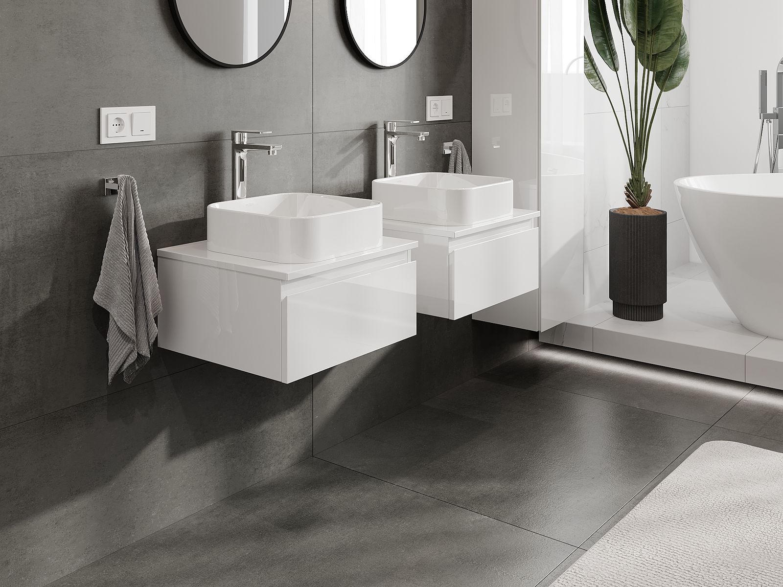 Mūsų moduliniai vonios baldai gali būti derinami tarpusavyje įvairiomis spalvų konfigūracijomis, leidžiant visiškai pritaikyti pagal asmeninius poreikius. Galima pasirinkti tiek atskirų elementų išvaizdą, tiek funkcijas, kas leidžia baldus pritaikyti pagal savo stiliaus ir naudojimo preferencijas.