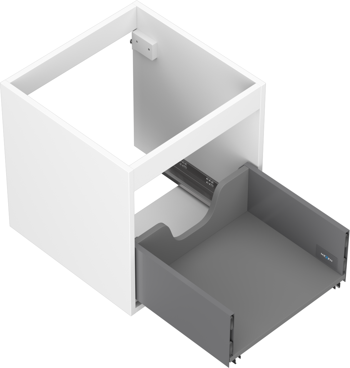 Iškirpimas stalčiuje yra suprojektuotas taip, kad tilptų sifonas, kuris yra būtinas kriauklės įrenginiuose. Dėl to baldas gali būti pilnai funkcionaliai sumontuotas, nereikalaujant atsisakyti vietos stalčiuje dėl įrenginio.