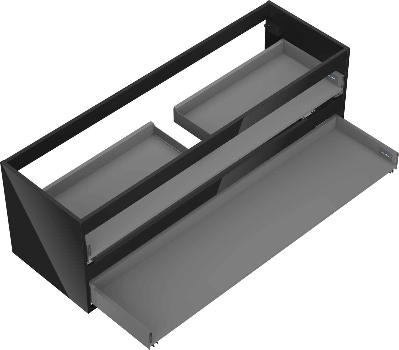 Mexen Box-A spintelės karkasas po praustuvu 140 cm, 2 stalčiai, juodas blizgesys - 91AX0-1400-470-2-70