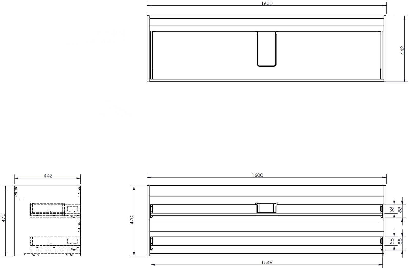 Iškirpimas stalčiuje yra suprojektuotas taip, kad tilptų sifonas, kuris yra būtinas kriauklės įrenginiuose. Dėl to baldas gali būti pilnai funkcionaliai sumontuotas, nereikalaujant atsisakyti vietos stalčiuje dėl įrenginio.