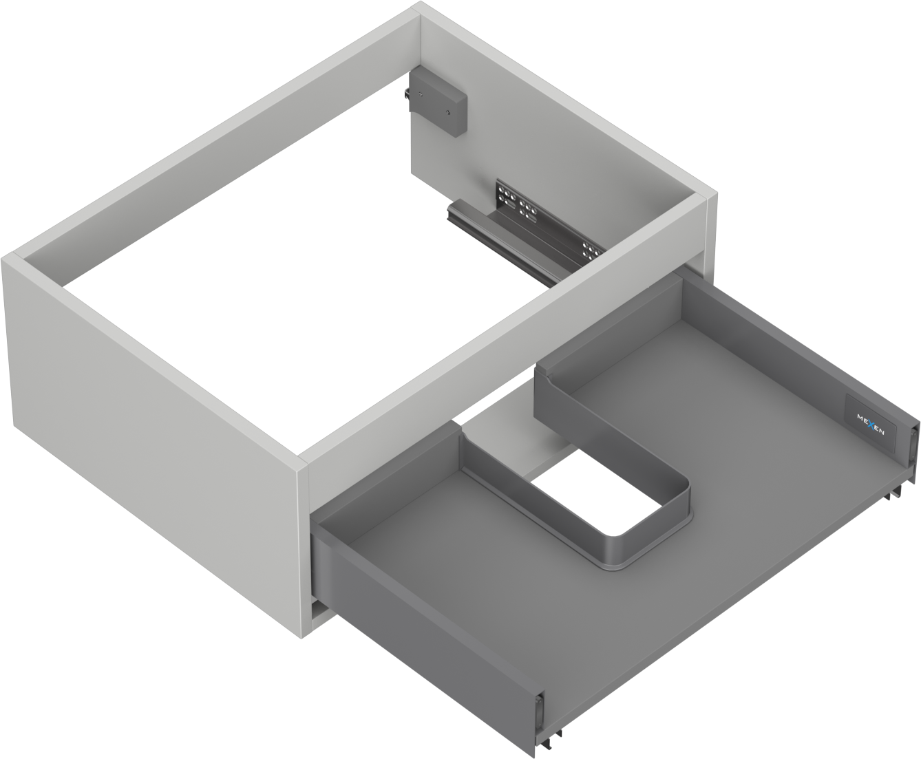 Iškirpimas stalčiuje yra suprojektuotas taip, kad tilptų sifonas, kuris yra būtinas kriauklės įrenginiuose. Dėl to baldas gali būti pilnai funkcionaliai sumontuotas, nereikalaujant atsisakyti vietos stalčiuje dėl įrenginio.