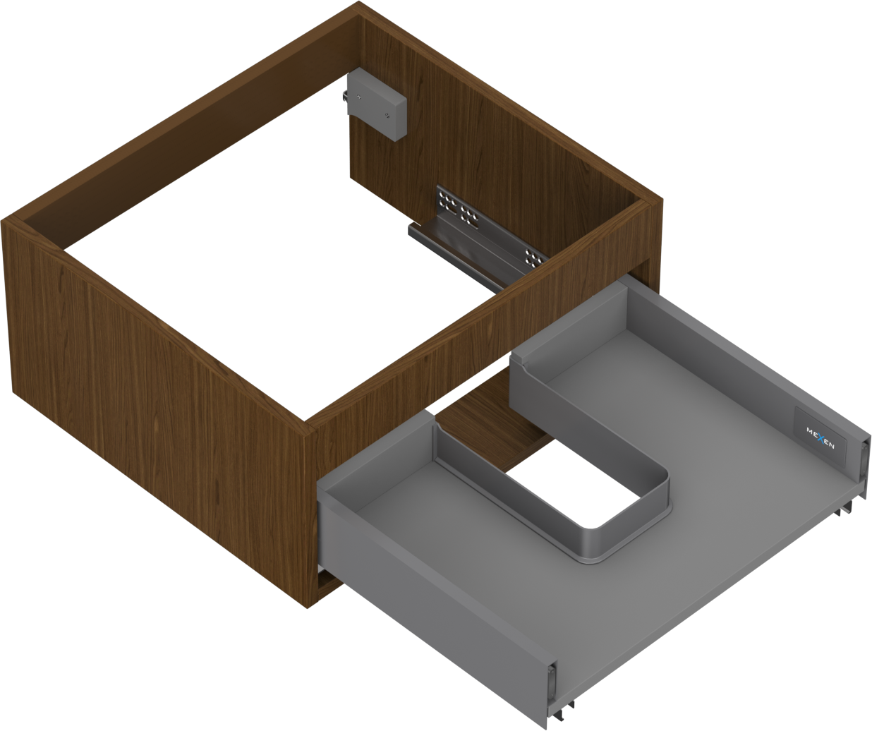 Iškirpimas stalčiuje yra suprojektuotas taip, kad tilptų sifonas, kuris yra būtinas kriauklės įrenginiuose. Dėl to baldas gali būti pilnai funkcionaliai sumontuotas, nereikalaujant atsisakyti vietos stalčiuje dėl įrenginio.