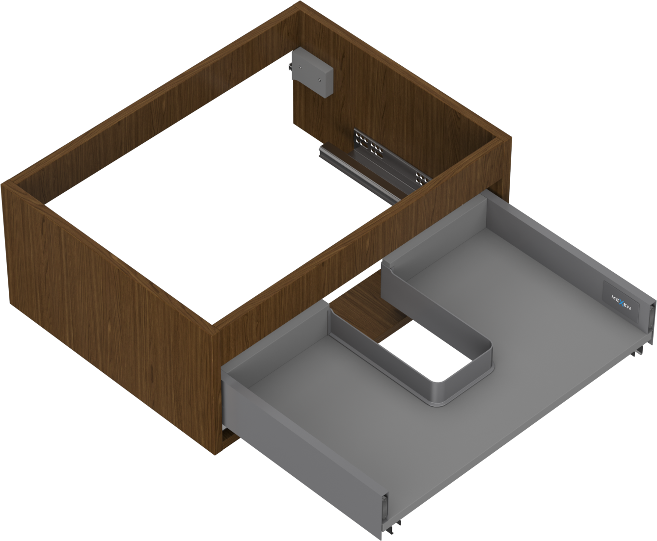Iškirpimas stalčiuje yra suprojektuotas taip, kad tilptų sifonas, kuris yra būtinas kriauklės įrenginiuose. Dėl to baldas gali būti pilnai funkcionaliai sumontuotas, nereikalaujant atsisakyti vietos stalčiuje dėl įrenginio.