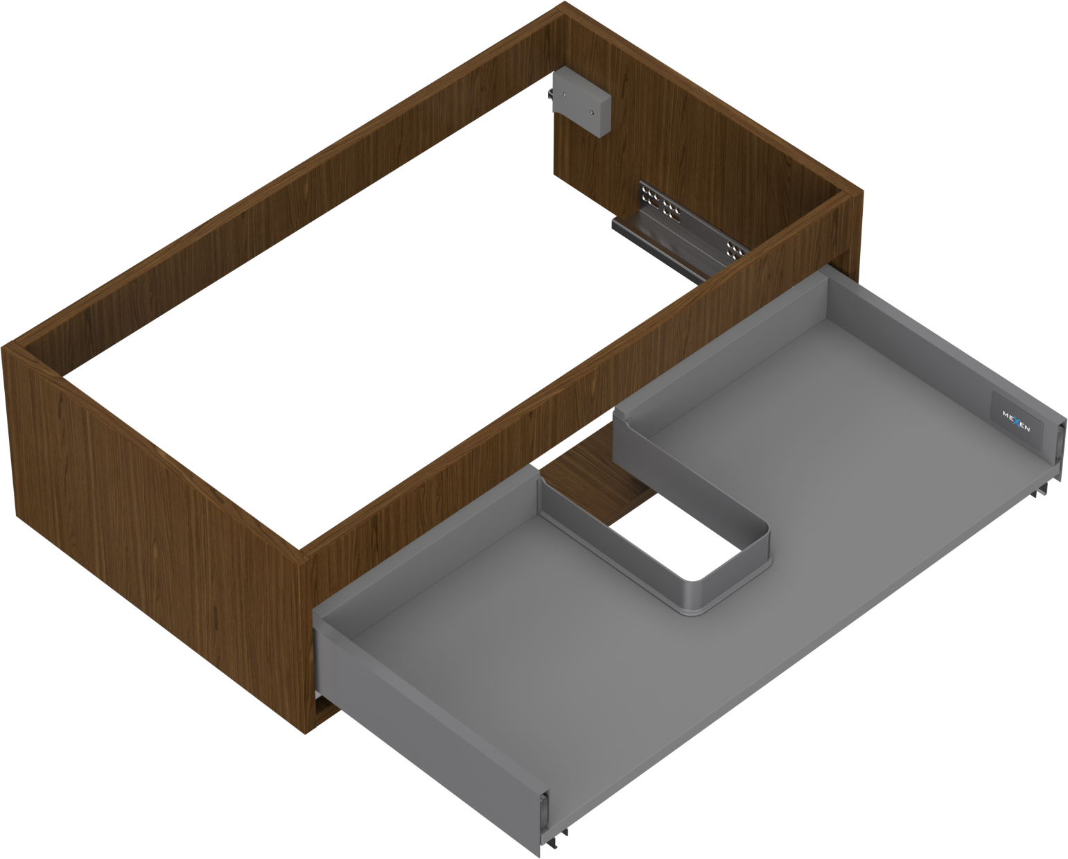 Iškirpimas stalčiuje yra suprojektuotas taip, kad tilptų sifonas, kuris yra būtinas kriauklės įrenginiuose. Dėl to baldas gali būti pilnai funkcionaliai sumontuotas, nereikalaujant atsisakyti vietos stalčiuje dėl įrenginio.
