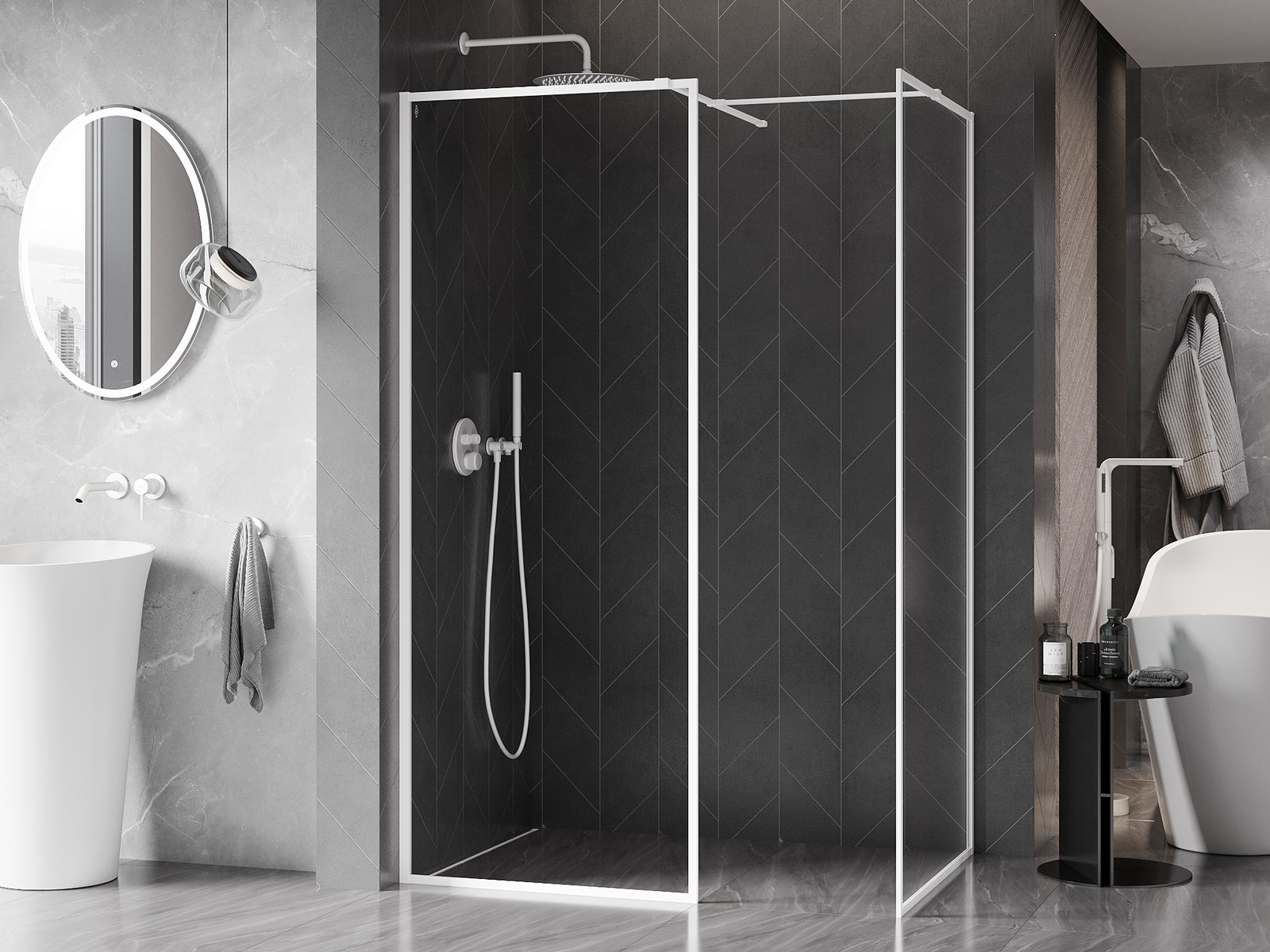 Produktą, atsižvelgiant į poreikius, galima sumontuoti tiek ant dušo padėklo, tiek tiesiogiai ant grindų. Universalus montavimo būdas leidžia pritaikyti produktą įvairių tipų vonios kambariams ir erdvės konfigūracijoms.