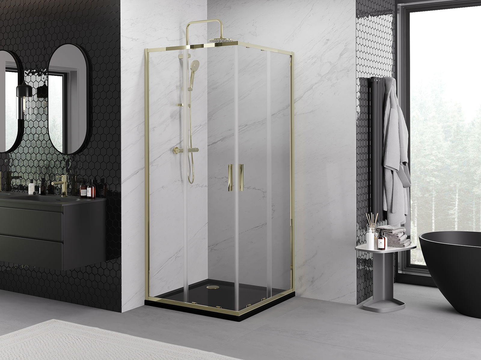 Produktą, atsižvelgiant į poreikius, galima sumontuoti tiek ant dušo padėklo, tiek tiesiogiai ant grindų. Universalus montavimo būdas leidžia pritaikyti produktą įvairių tipų vonios kambariams ir erdvės konfigūracijoms.