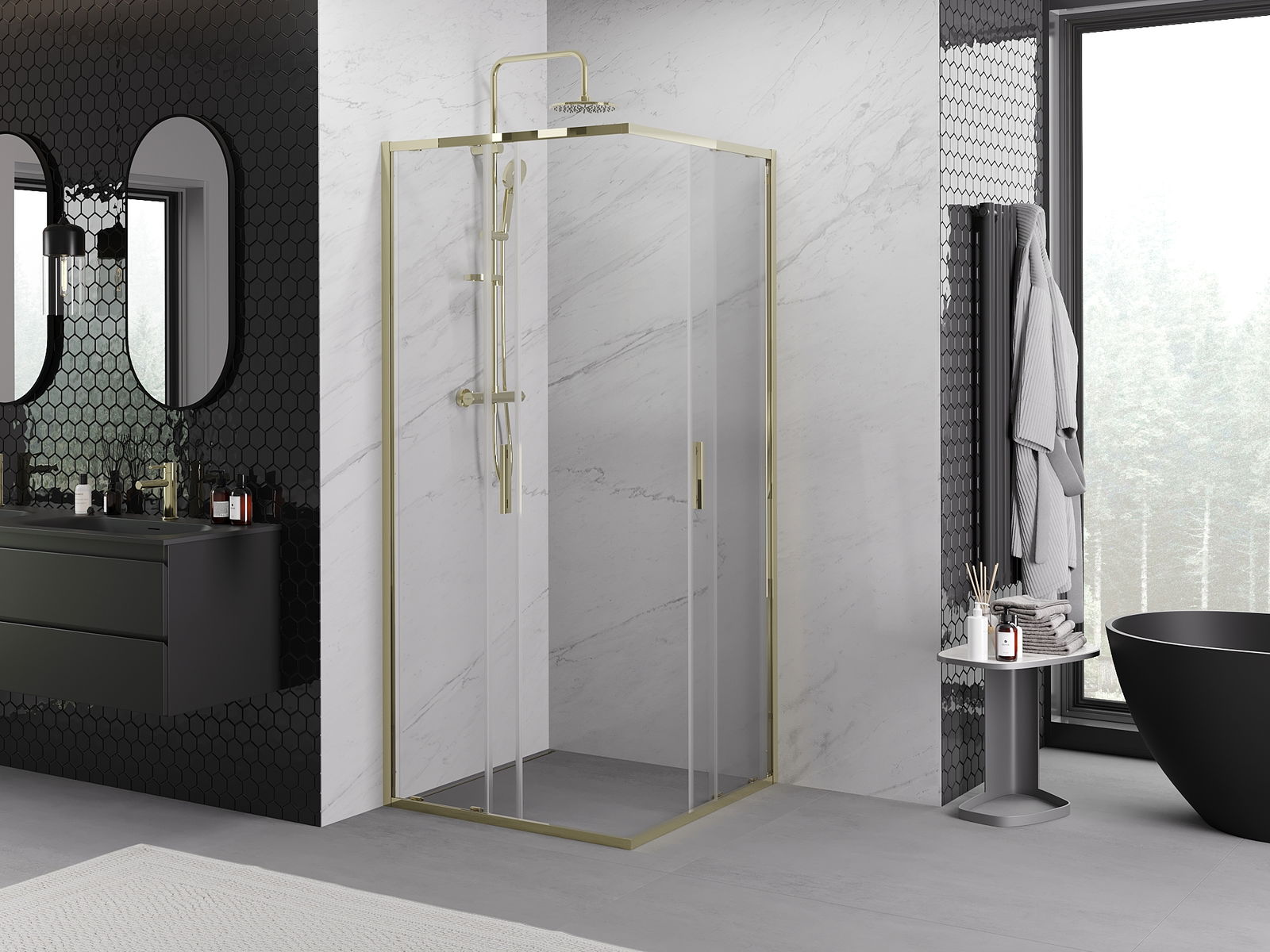 Mexen Exo kvadratinė dušo kabina stumdoma 90 x 90 cm, skaidri, auksinė - 8111-090-090-50-00