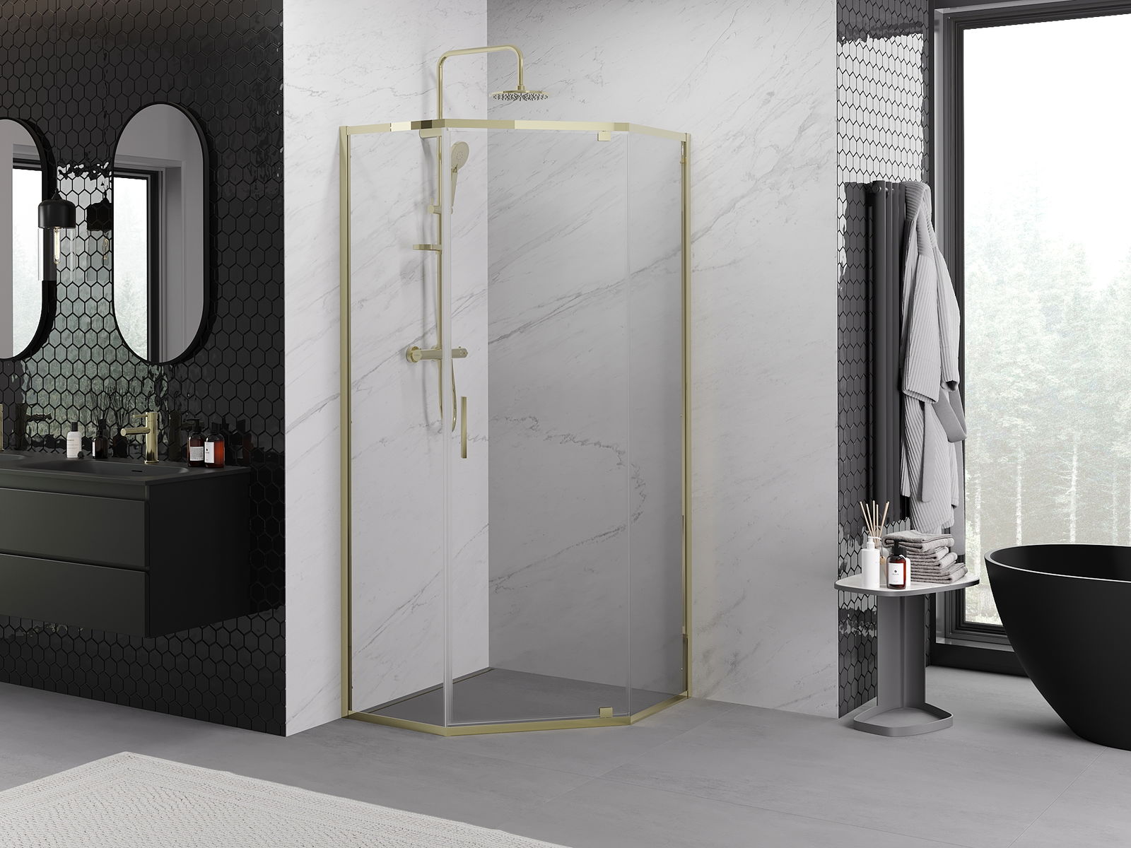 Produktą, atsižvelgiant į poreikius, galima sumontuoti tiek ant dušo padėklo, tiek tiesiogiai ant grindų. Universalus montavimo būdas leidžia pritaikyti produktą įvairių tipų vonios kambariams ir erdvės konfigūracijoms.