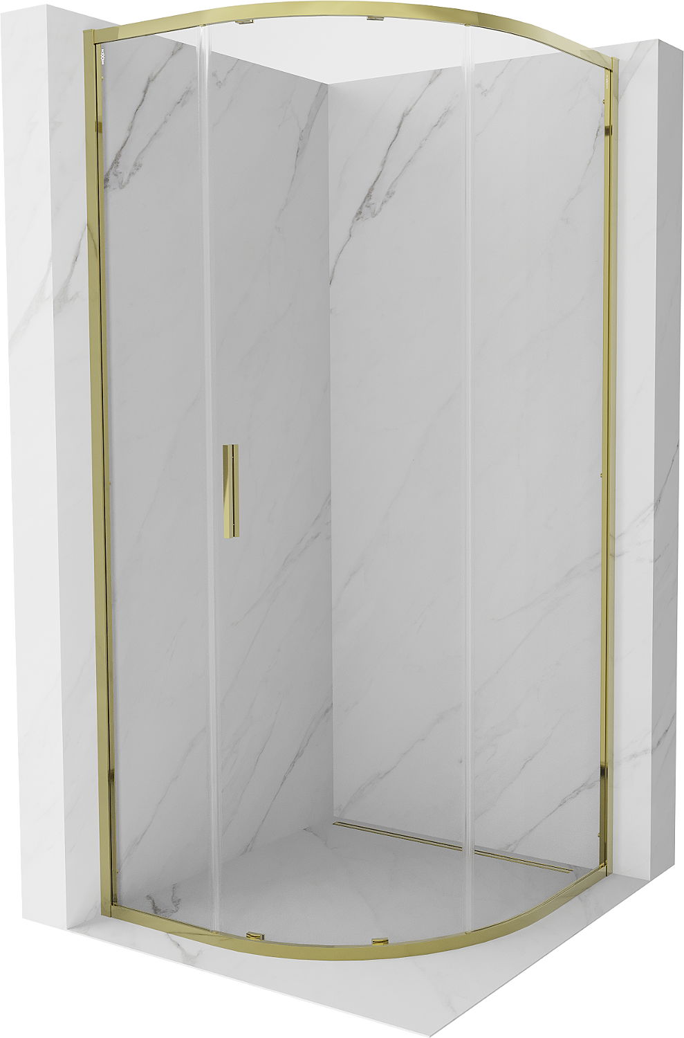 Mexen Exo pusapvalė dušo kabina stumdomomis durimis 100 x 100 cm, skaidri, auksinė - 8131-100-100-50-00