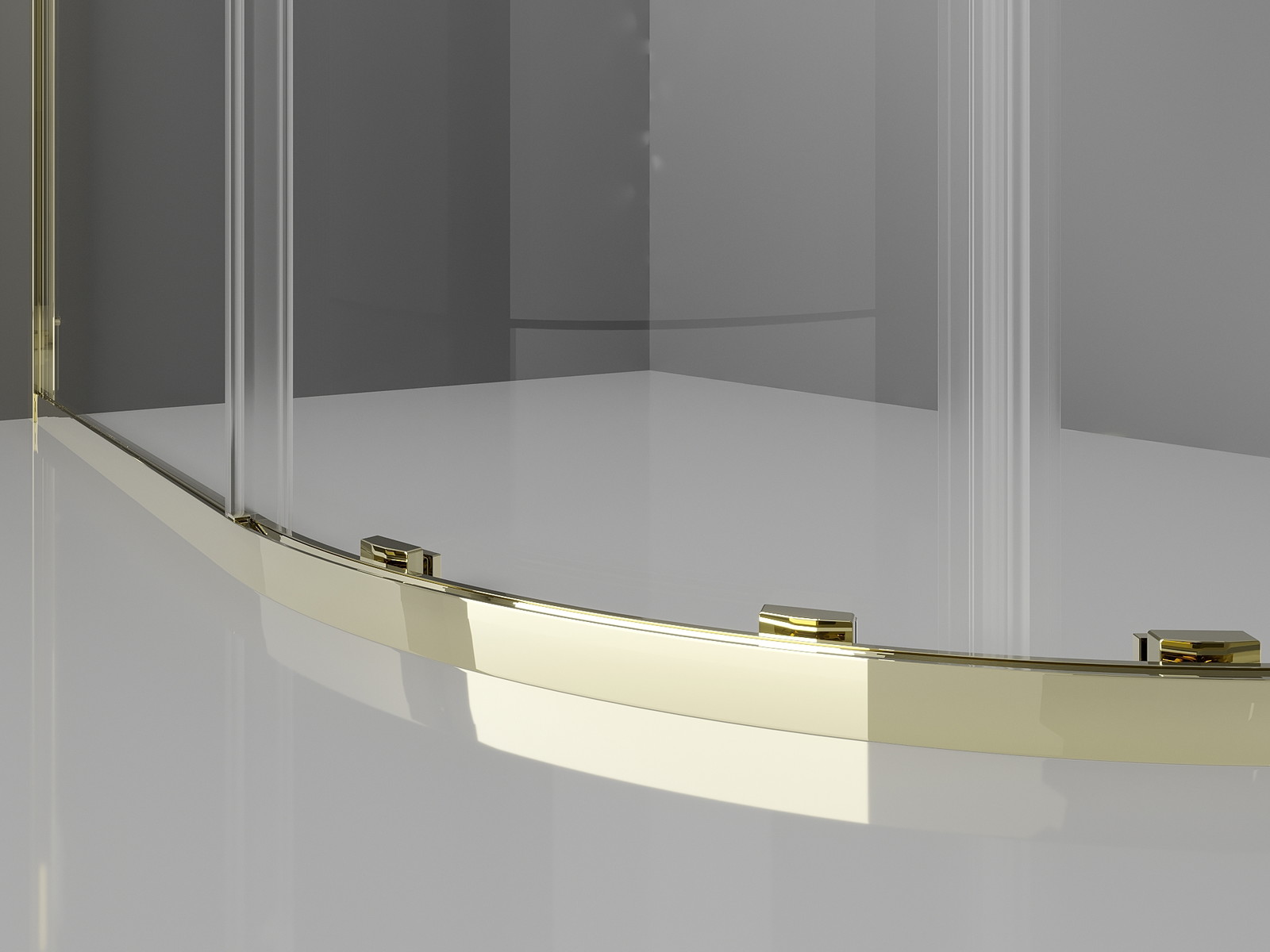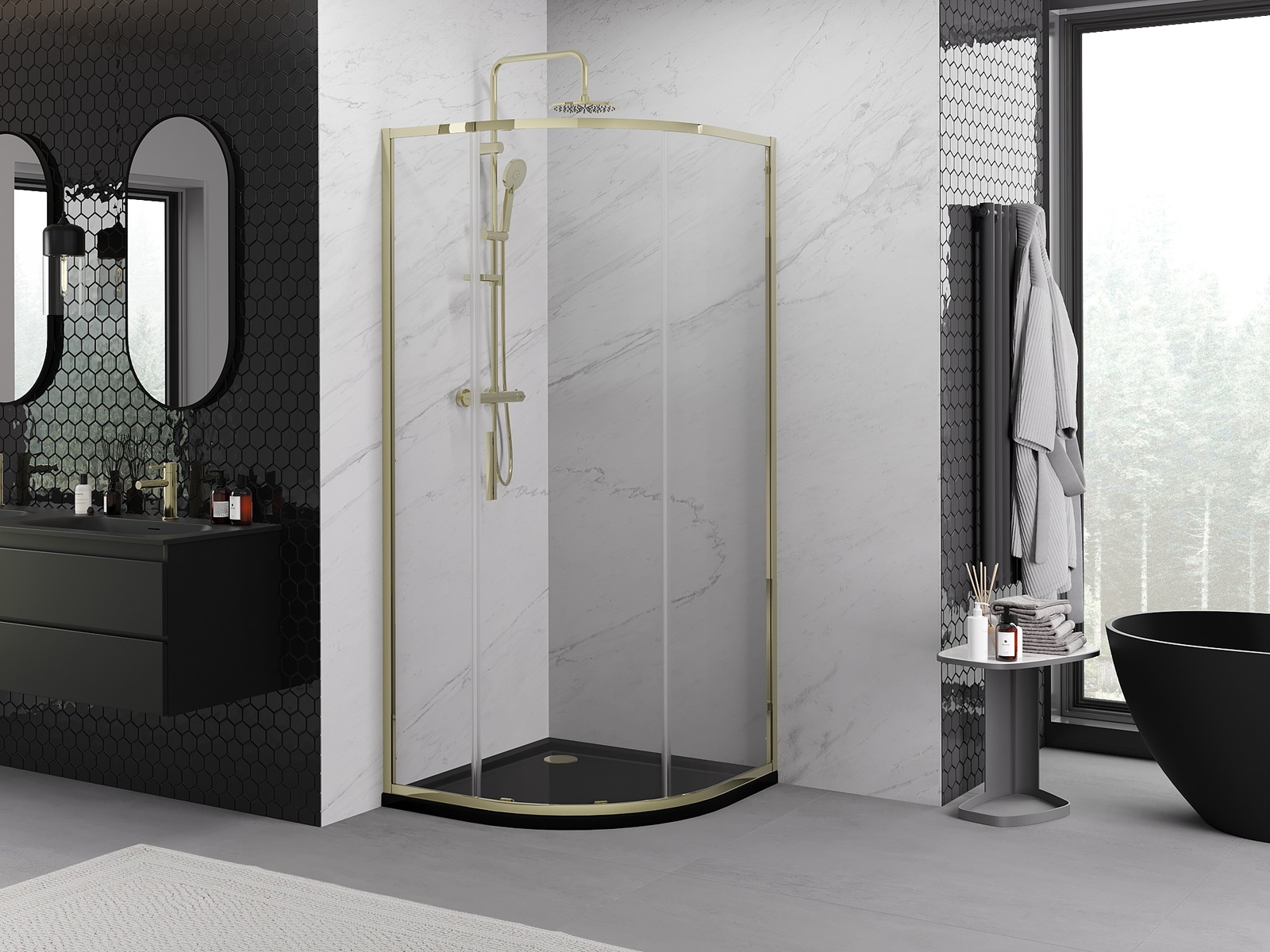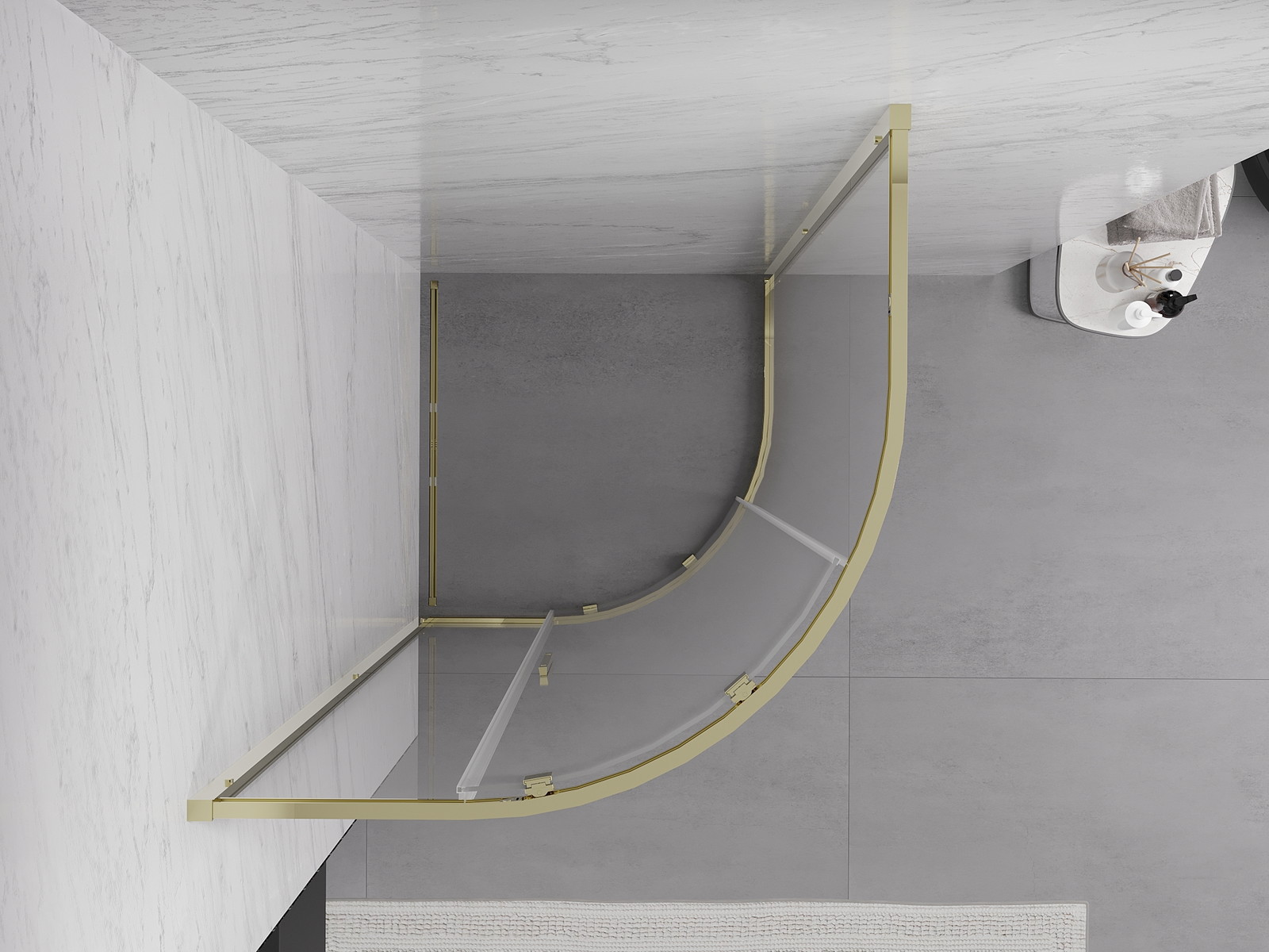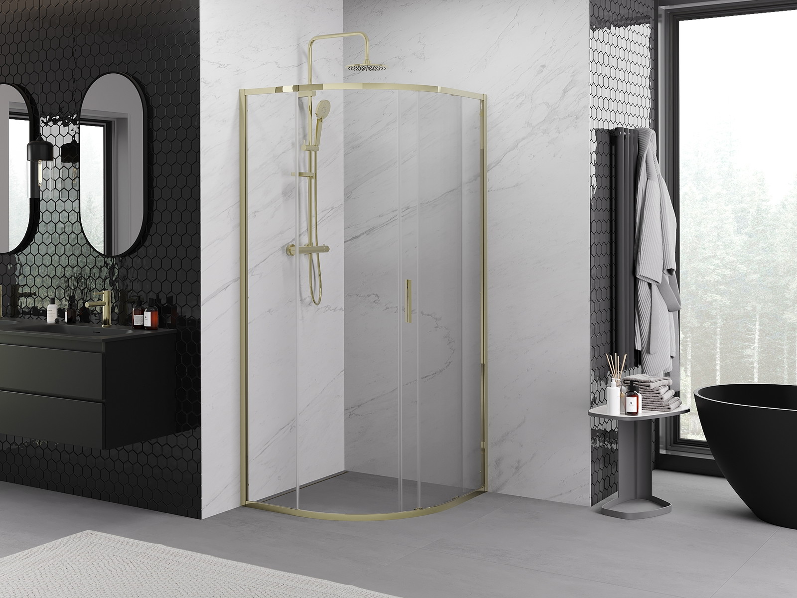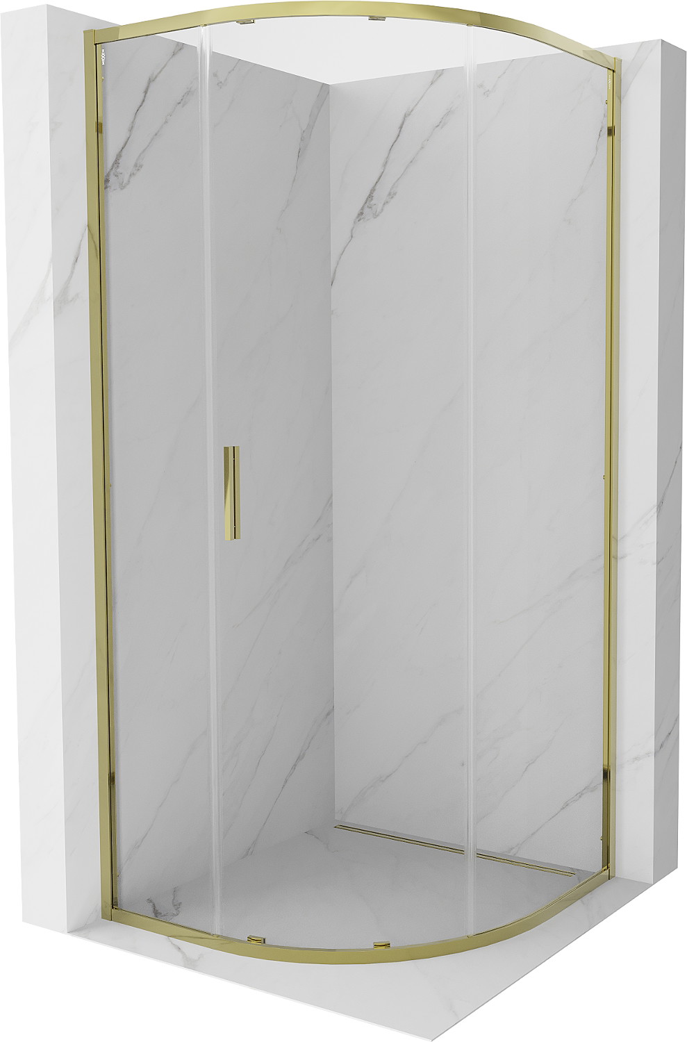 Mexen Exo pusapvalė slankiojanti dušo kabina, 100 x 100 cm, skaidri, auksinė - 8131-100-100-50-00