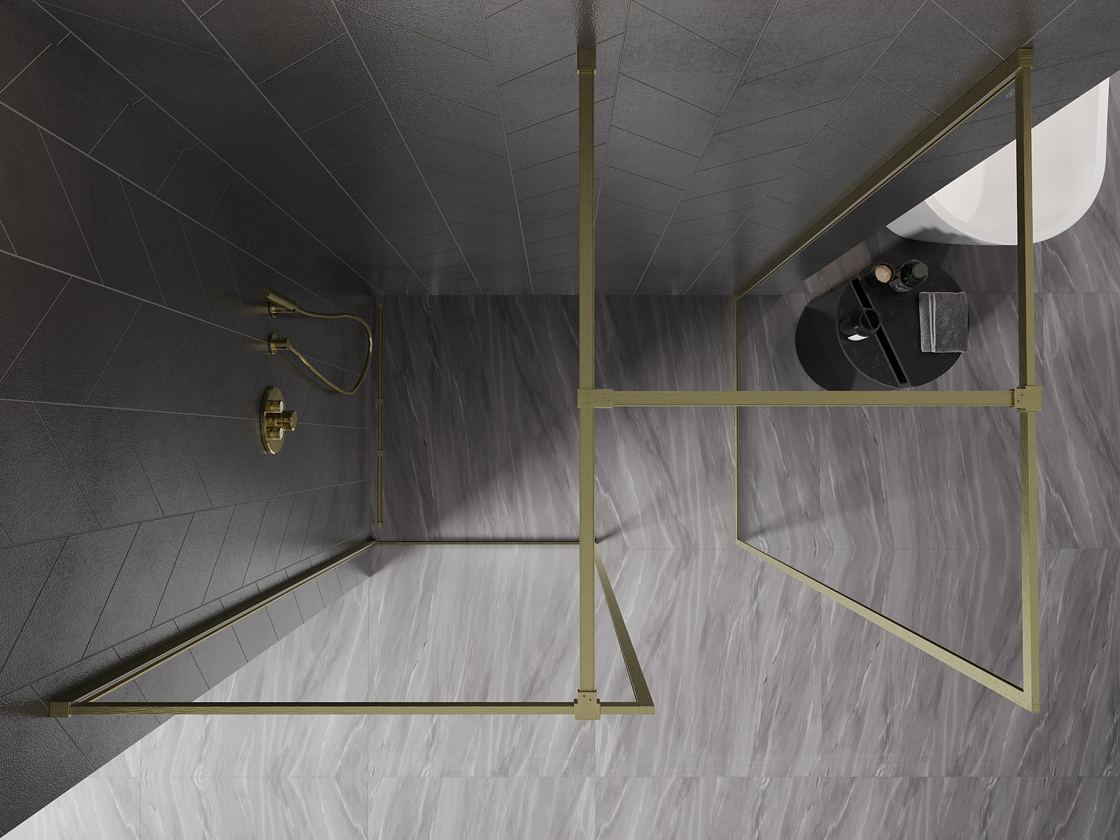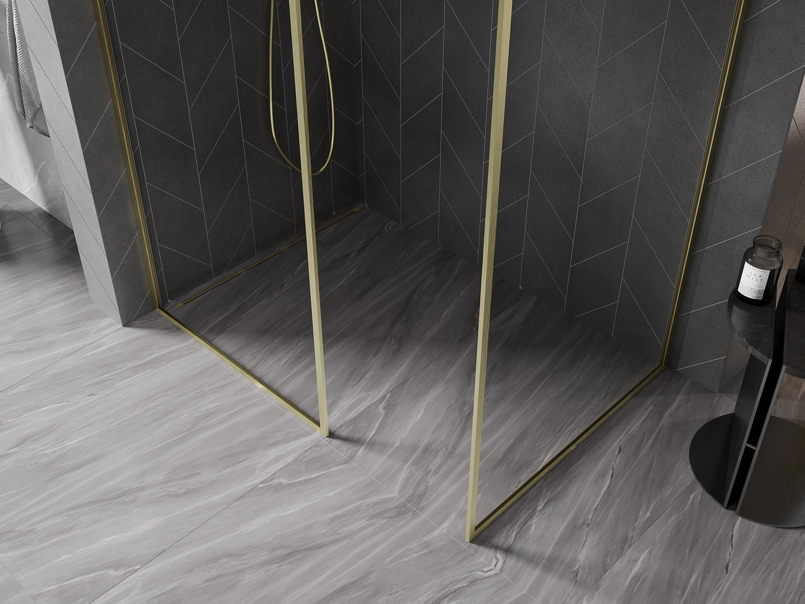 Mexen Kioto-F Dušo sienelė „Walk-in“ su rėmeliu 105 x 70 cm, skaidri 8 mm, aukso spalvos šlifuota