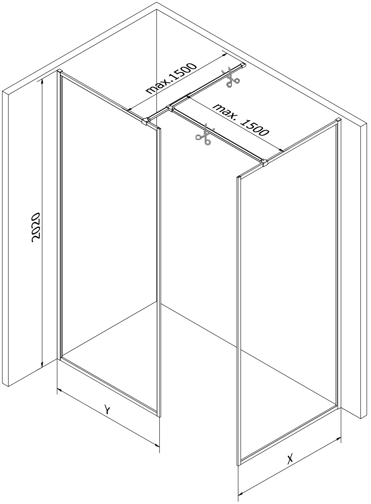 Plotis: 110x110 cm (sienelė X - 110 cm, sienelė Y - 110 cm)