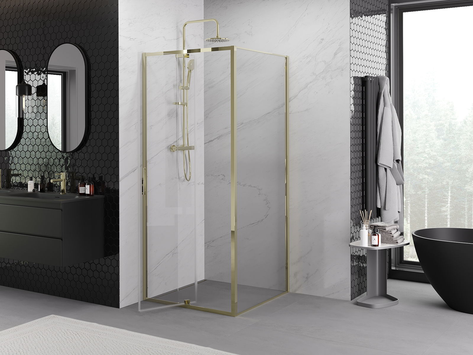 Mexen Exo dušo kabina atveriama 100 x 100 cm, skaidrus, auksinis - 819-100-100-50-00