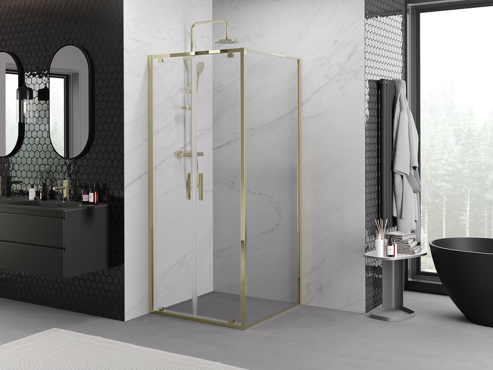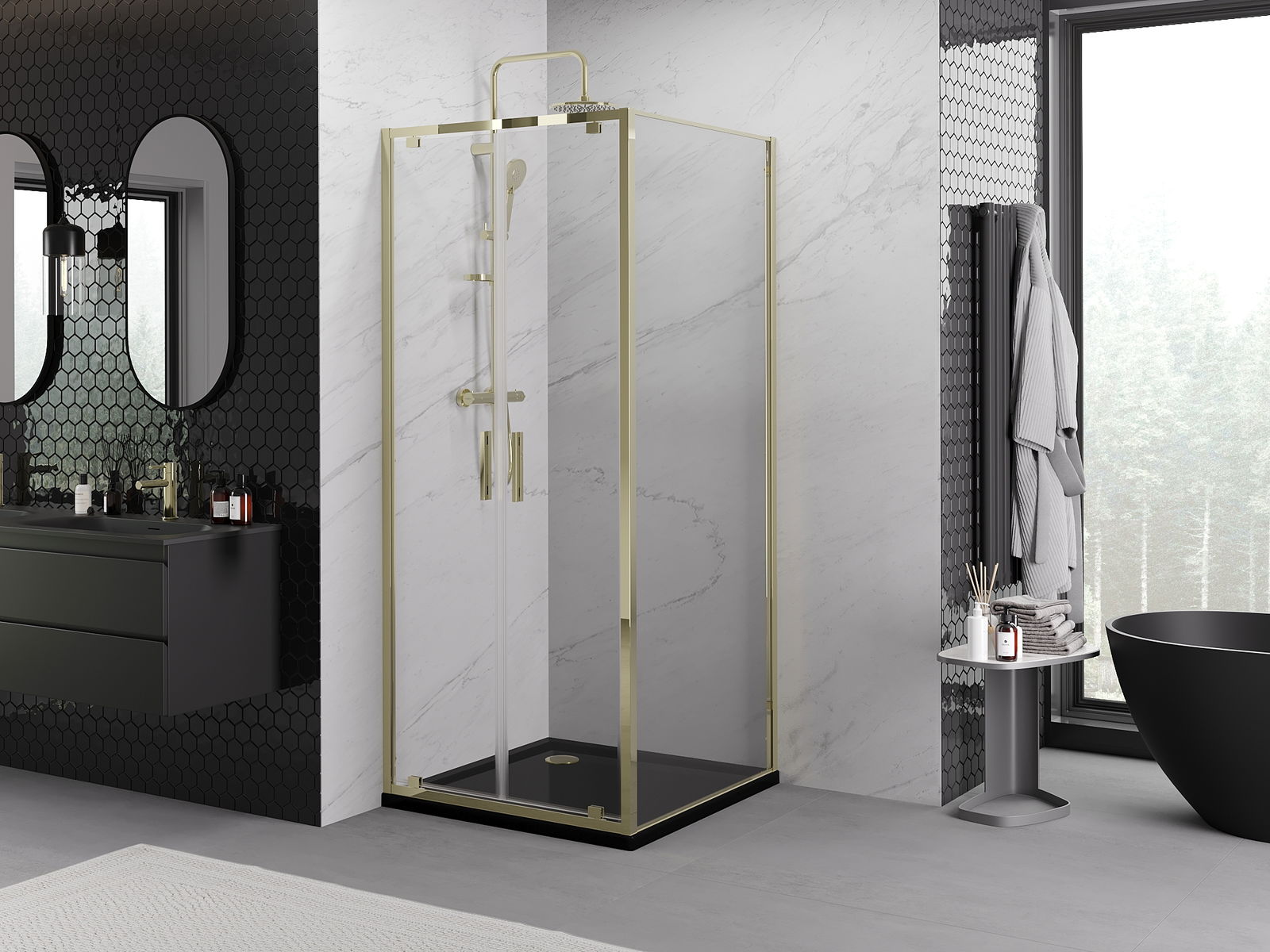 Mexen Exo dušo kabina atidaroma 70 x 70 cm, skaidri, auksinė - 8182-070-070-50-00